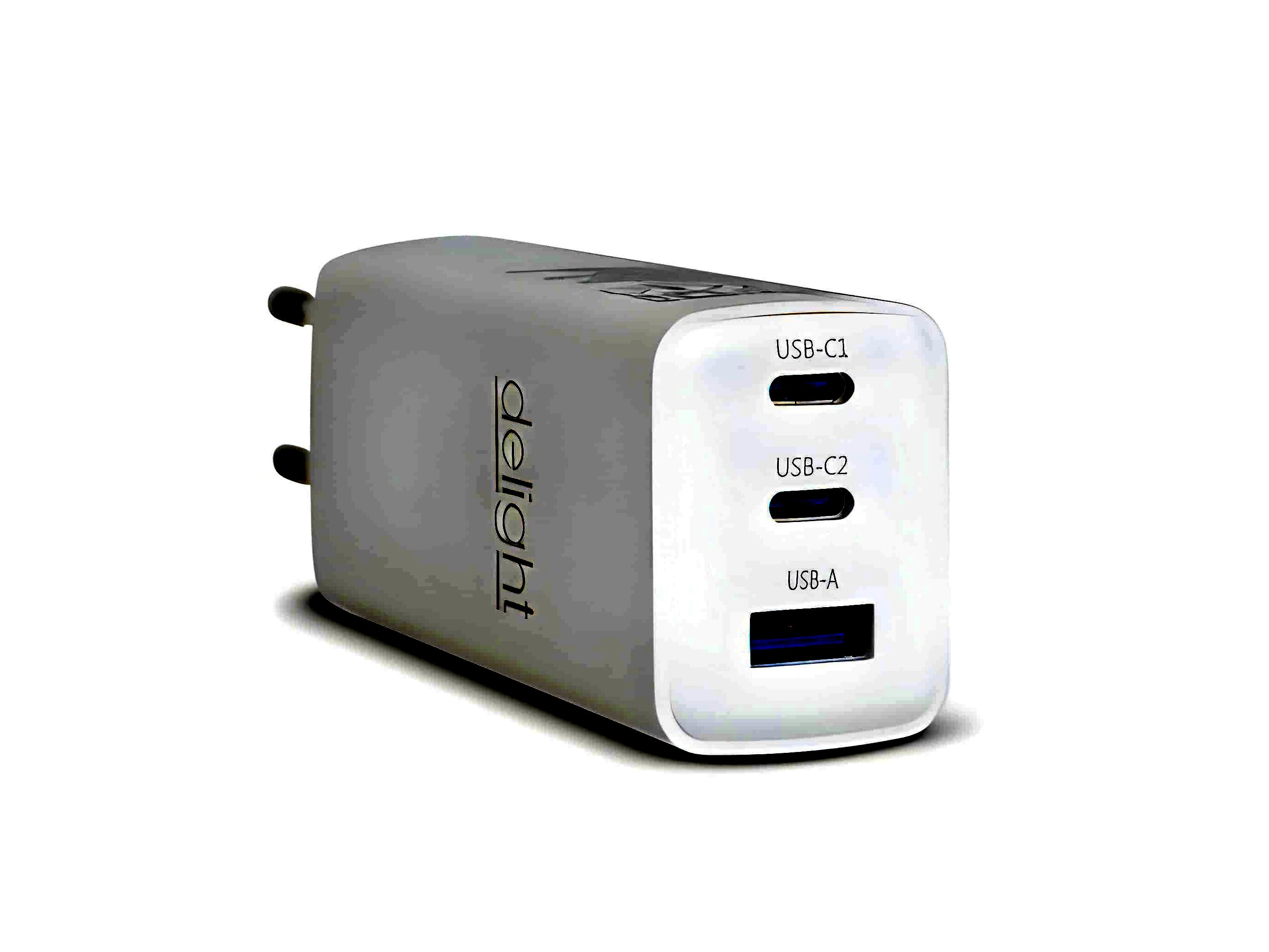 • Két Type-C + egy USB-A csatlakozó – több eszköz egyidejű töltéséhez