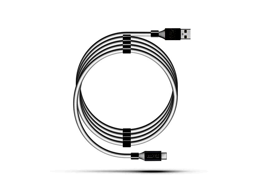 USB-C csatlakozóval felszerelt kábel, amely alkalmas adatátvitelre és készüléktöltésre is. A kábel teljes hosszán elhelyezkedő 10 db mágnes segít a rendezett kábeltárolásban, valamint a felesleges kábelhossz könnyű összefogásában. A szilikon védőborítás megvédi a kábelt az esetleges külső sérülésektől, valamint fontos szerepet tölt be a mágnesek elhelyezkedésében. A mágneseknek köszönhetően a kábel gubancmentesen tárolható tetszőleges formában.
