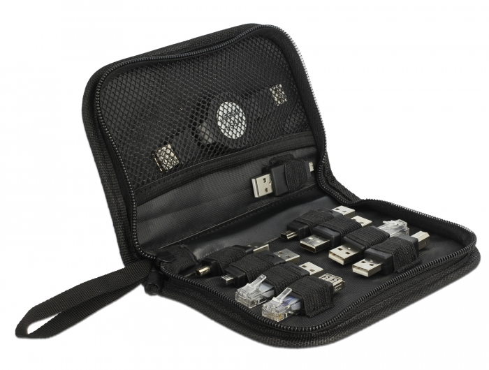 Ez a 10 részes USB adapter a Delock-tól, tartalmazza 9 leggyakrabban használt USB adaptert és 1,20m-es hosszabbító kábelt, a különböző USB eszközök csatlakozásához. Ezen felül mindig kéznél van a megfelelő adapter, ami rendesen eltárolható a cipzáras táskában. Ez a készlet rendkívül hasznos,ha úton vagyunk illetve kényelmesen elhelyezhető a laptop táskában is.