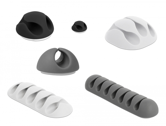 Ezek a Delock kábeltartók lehetővé teszik a szabadon álló kábelek tiszta és rendezett szétosztását. Öntapadósak és könnyen hozzátapaszthatók bármilyen sima felülethez, úgy, mint asztalhoz, falhoz, és le is vehető onnan bármilyen nyom hátrahagyása nélkül.
