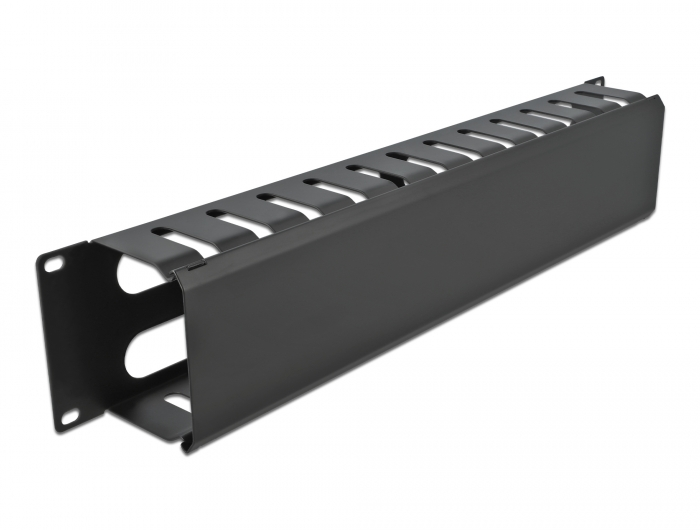 Ez a Delock kábelrendező panel 19"-es hálózati szekrénybe való beépítésre alkalmas.