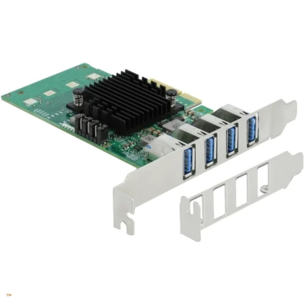 • PCIe x4 sávszélesség: az x4-es csatoló nagyobb össz-sávszélességet biztosít, mint az elterjedtebb x1-es kártyák, ez különösen akkor előnyös, ha mind a négy portot egyszerre nagy sebességgel terheljük.