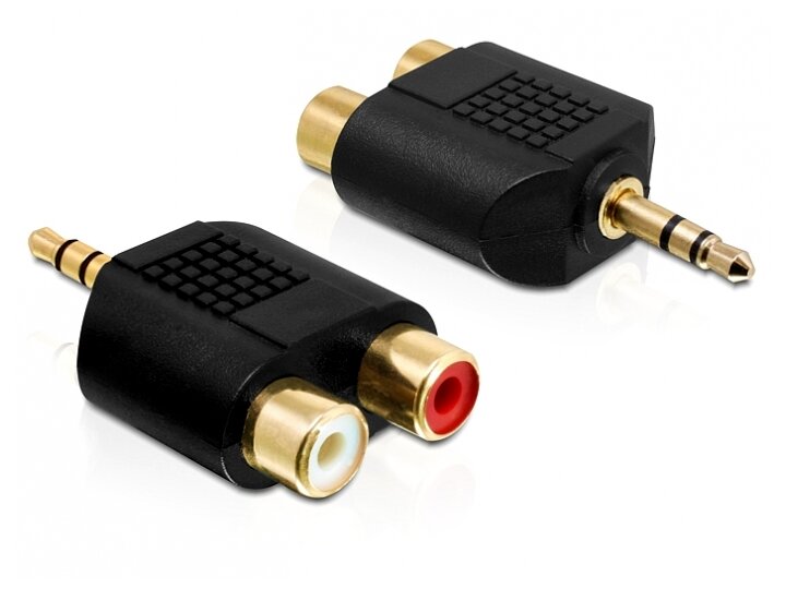 Ez a Delock adapter a 3.5 mm-es sztereo jack anya portot két RCA (Cinch) interfésszé alakítja. Így csatlakoztathatja pl. MP3 lejátszóját HiFi rendszeréhez, TV-jéhez, egy RCA kábellel.