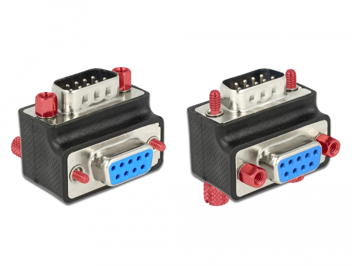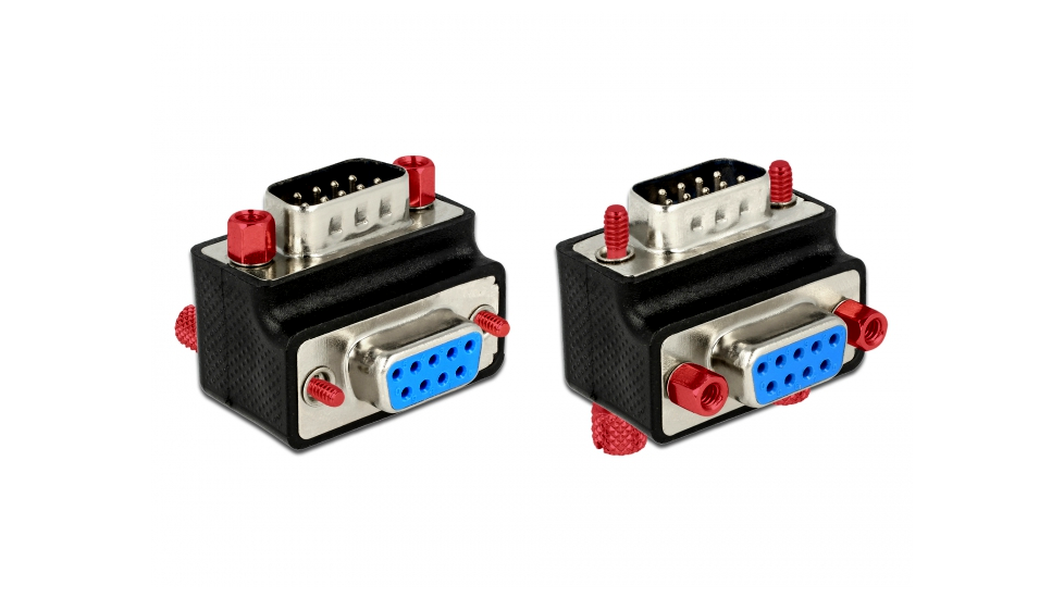 Ez a Delock adapter lehetővé teszi, hogy 90 fokkal módosítsa egy soros csatlakozás szögét. Ennek köszönhetően egyszerűen és gond nélkül csatlakoztathat egy sorost kábelt, amennyiben a meglévő soros csatlakozóhüvelyhez nehezen lehet hozzáférni. Ezenkívül a csavarok és a csavaranyák egymással felcserélhetők.