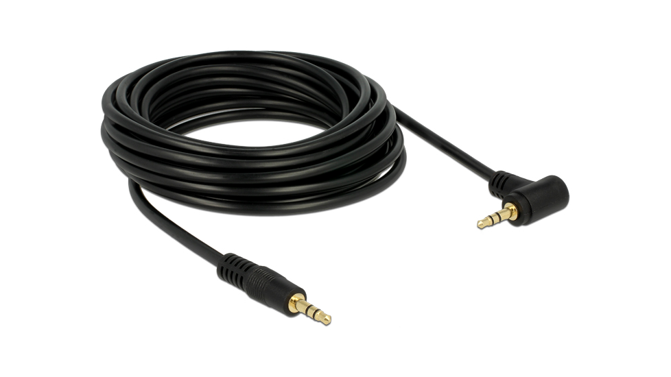 Ez a Delock sztereo kábel használható különféle audioeszközök csatlakoztatására 3,5 mm-es sztereo jack aljzattal. Az egyik sztereo jack-csatlakozó szöget zár be, abban az esetben, ha a meglévő sztereo-jack-aljzathoz nehéz hozzáférni.