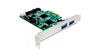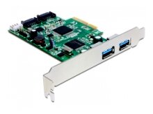 The Delock PCI Express card expands your PC by two external USB 3.0 ports and two internal SATA ports. You can connect devices like e.g. docking station, card reader, hard drives, DVD-drives etc. to the card.
