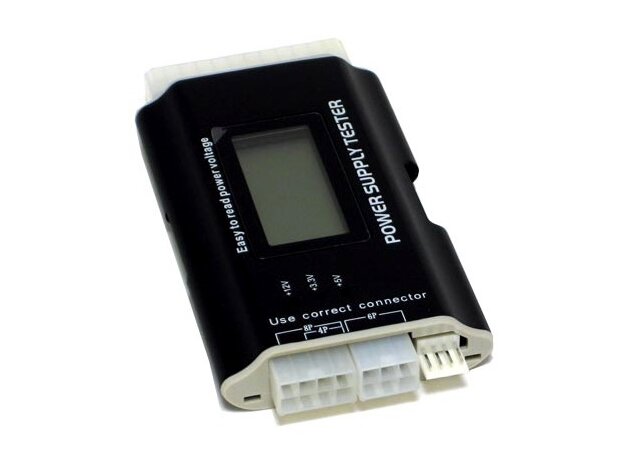 The Delock Power supply tester is a robust voltage tester for PC-power supply. ATX, BTX and ITX compliant power supplies can be tested. The device shows on one display all supply voltage with one decimal place. Errors will be announced by a warn signal. The PC/SPS is suitable for the ambitious hobby user, as well as for a quick functional check in specialized trade.