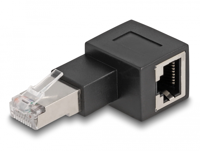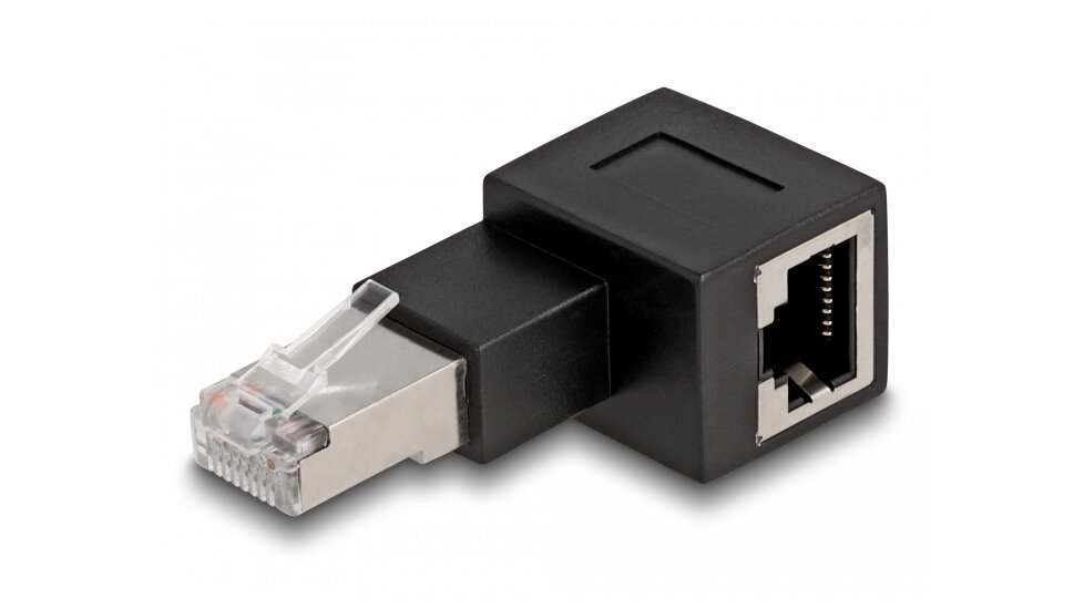 Ezzel a Delock adapterrel a készülék RJ45-ös csatlakozója 90°-os szögben elfordítható. Ez megkönnyíti a hálózati kábel csatlakoztatását a nehezen hozzáférhető helyeken, és megakadályozza a készülék aljzatának sérülését vagy a kábel elszakadását a hajlítás miatt.