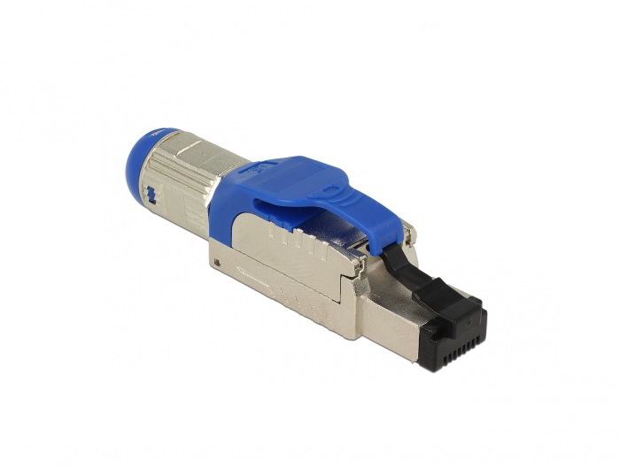 A Delock RJ45 dugaszoló szerelvény hálózati kábelek csatlakoztatására használható. A dugasz felszerelése különböző kábeltípusokra szerszám nélkül és időtakarékosan megvalósítható.