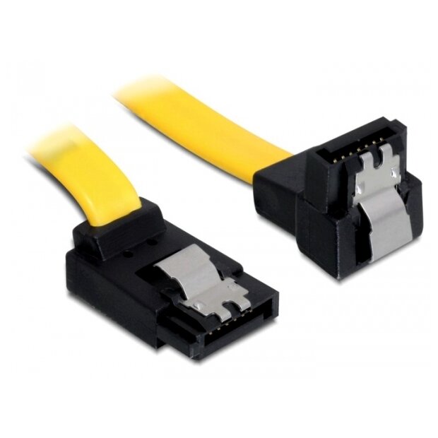 Ez a Delock SATA kábel megfelel a legújabb standardoknak és lehetővé teszi az akár 6 Gb/s-os adatátvitelt. Belső csatlakozási lehetőséget biztosít SATA 6 Gb/s-os eszközöknek (pl. HDD, vezérlő kártya vagy flash memória) Továbbá a SATA 6 Gb/s interfész kompatibilis az elődeivel, a korábbi SATA verziókkal, ahol azonban csak az adott adatátviteli sebességet érheti el. A SATA csatlakozón található fém rögzítőkkel biztosíthatja a kábelt.
