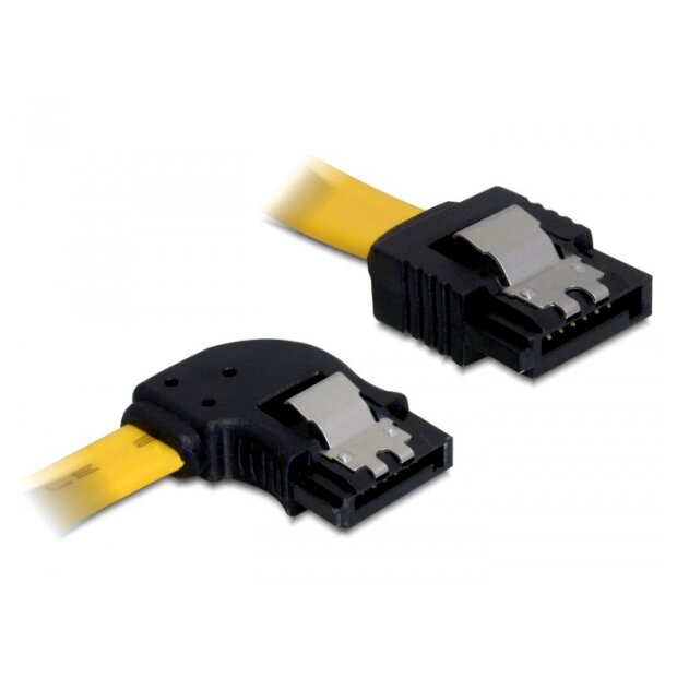 Ezzel a Delock SATA kábellel, különböző SATA-s eszközöket kapcsolhat össze, mint például SATA-HDD-t, SATA vezérlőket, SATA Flash kártyaolvasót. Ha ezt a kábelt HDD-hez használja, a kábel balra vezethető el, a csatlakoztatás után. A hasznos beépített fémrészek biztosítják a még stabilabb csatlakoztatást.