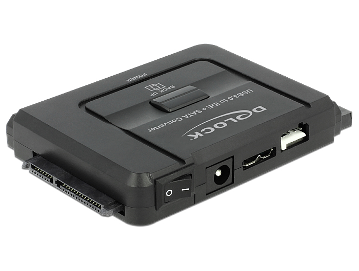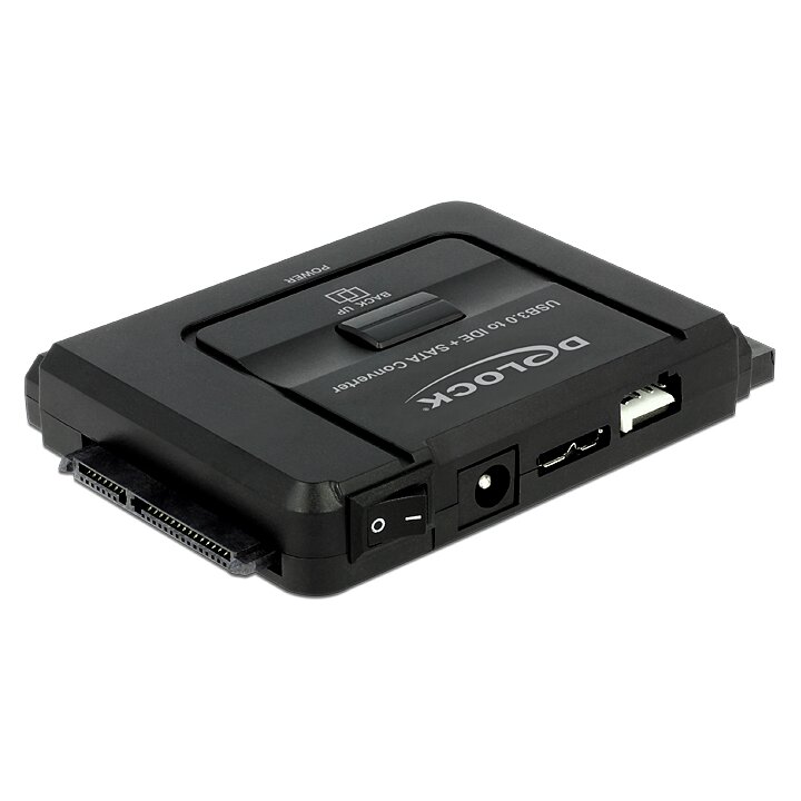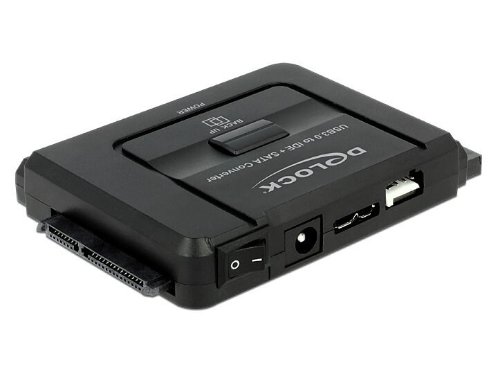Ez a Delock átalakító 2.5” vagy 3.5”-es IDE és SATA meghajtók csatlakoztatását teszi lehetővé PC-je USB-csatlakozóján keresztül. Így a meghajtót külső ház nélkül is csatlakoztathatja számítógépe USB-csatlakozóján keresztül. A mellékelt tápegység ellátja tápfeszültséggel az adaptert és a csatlakozatott meghajtókat. A biztonsági mentési funkció lehetővé teszi az adatmentést a PC-ről egy csatlakoztatott merevlemezre vagy SSD-re.