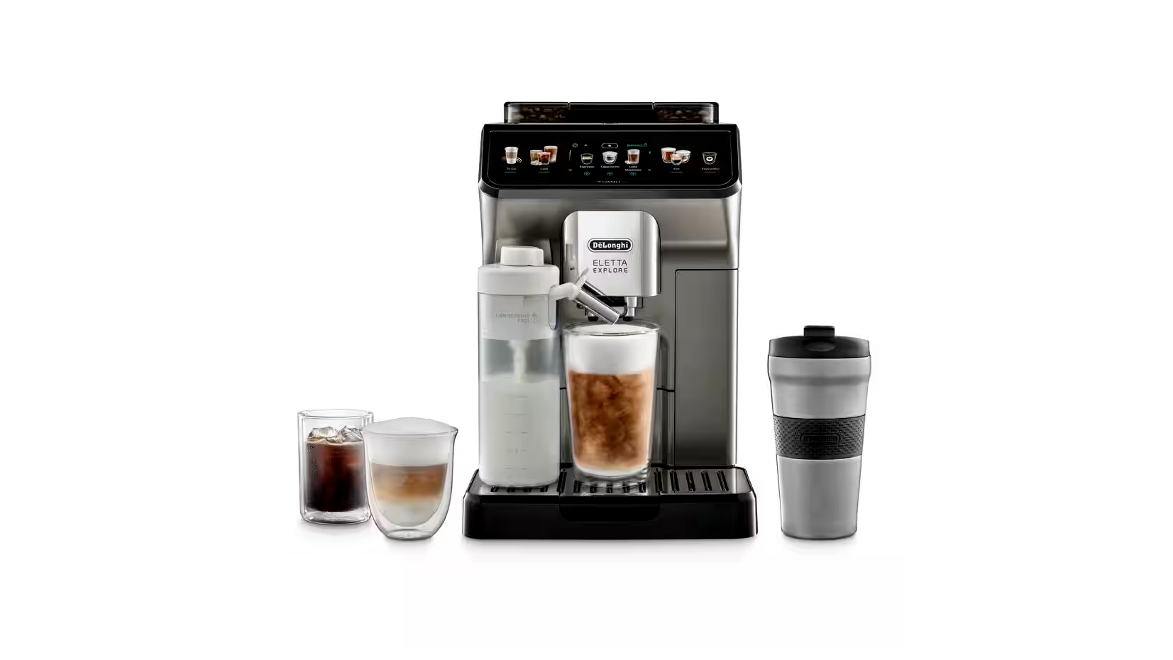 Az Eletta Explore automata kávéfőző titán előlappal több mint 50 féle ital elkészítését teszi lehetővé - forró és hideg kávéfőző. Élvezze az automatikus forró tejhabosító funkciót a LatteCrema Hot technológiának köszönhetően, és élvezze a frissítő hideg főzetet és hideg kávét a LatteCrema Cool és Cold Extraction technológiáknak köszönhetően. Élvezze a kávét úgy, mint a legjobb kávézóban otthonában - és még azon túl is a To-Go funkcióval.