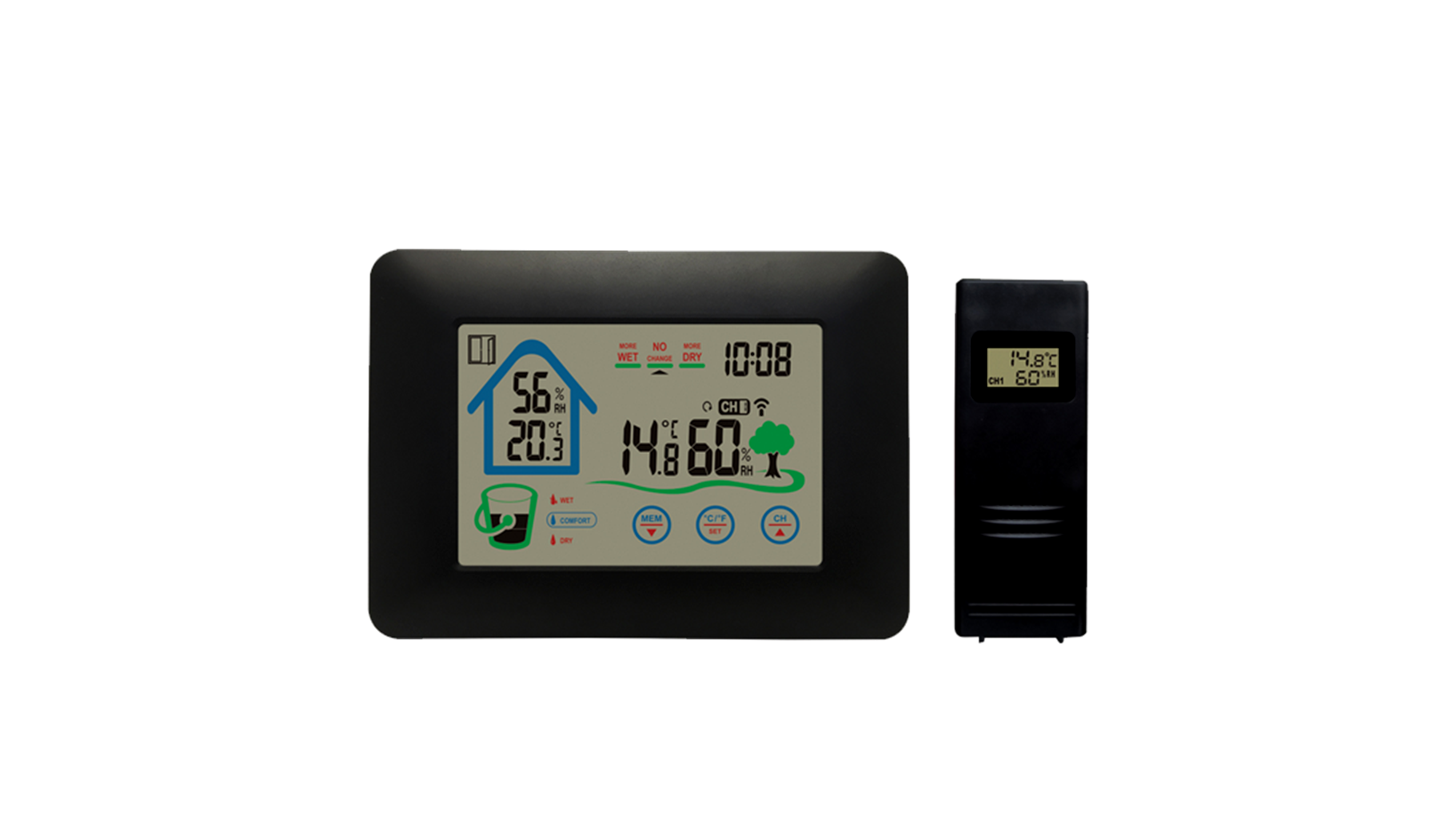 - A beltéri mutató ; a kültéri páratartalom mérése