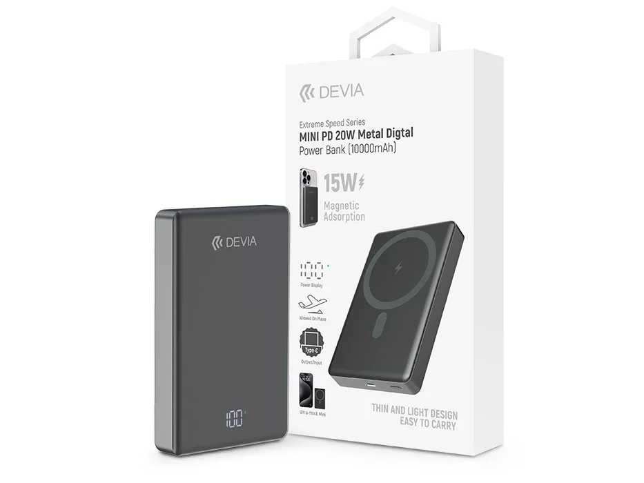 Devia ST107939 Extreme Speed Series Mini Metal Powerbank 10000 mAh 20W - Szürke