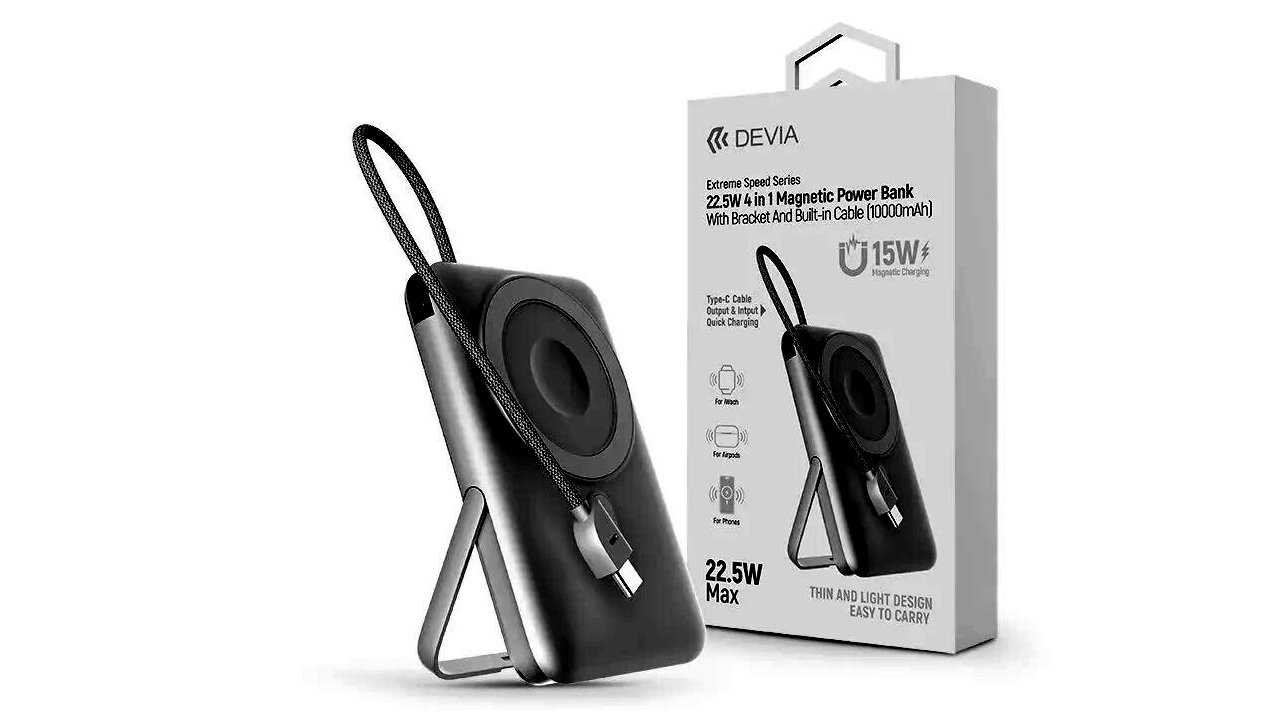 Devia ST112841 Extreme Speed Magnetic 4in1 Powerbank / Állvány 10000 mAh 22,5W - Ezüst