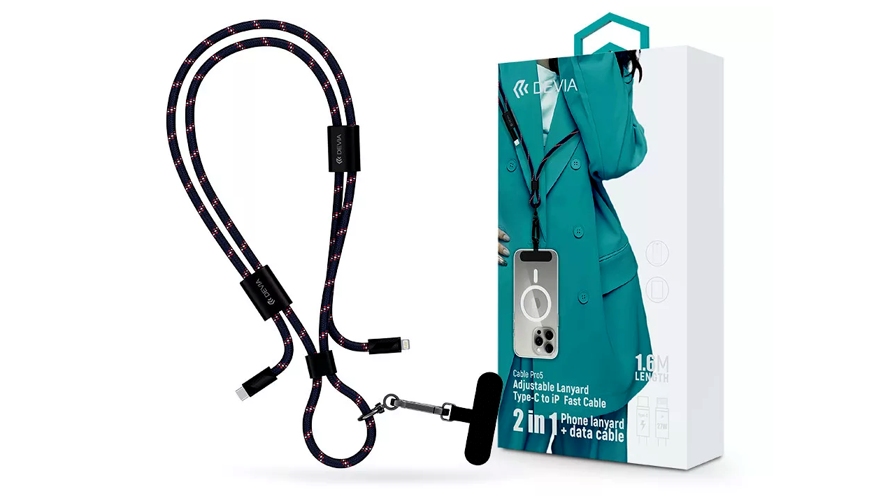 A kábelhez egy nyakpánt is tartozik, amely megkönnyíti a hordozhatóságot, így bárhol is tartózkodsz, mindig kéznél lesz az eszközöd biztonságos töltése és adatátvitele.