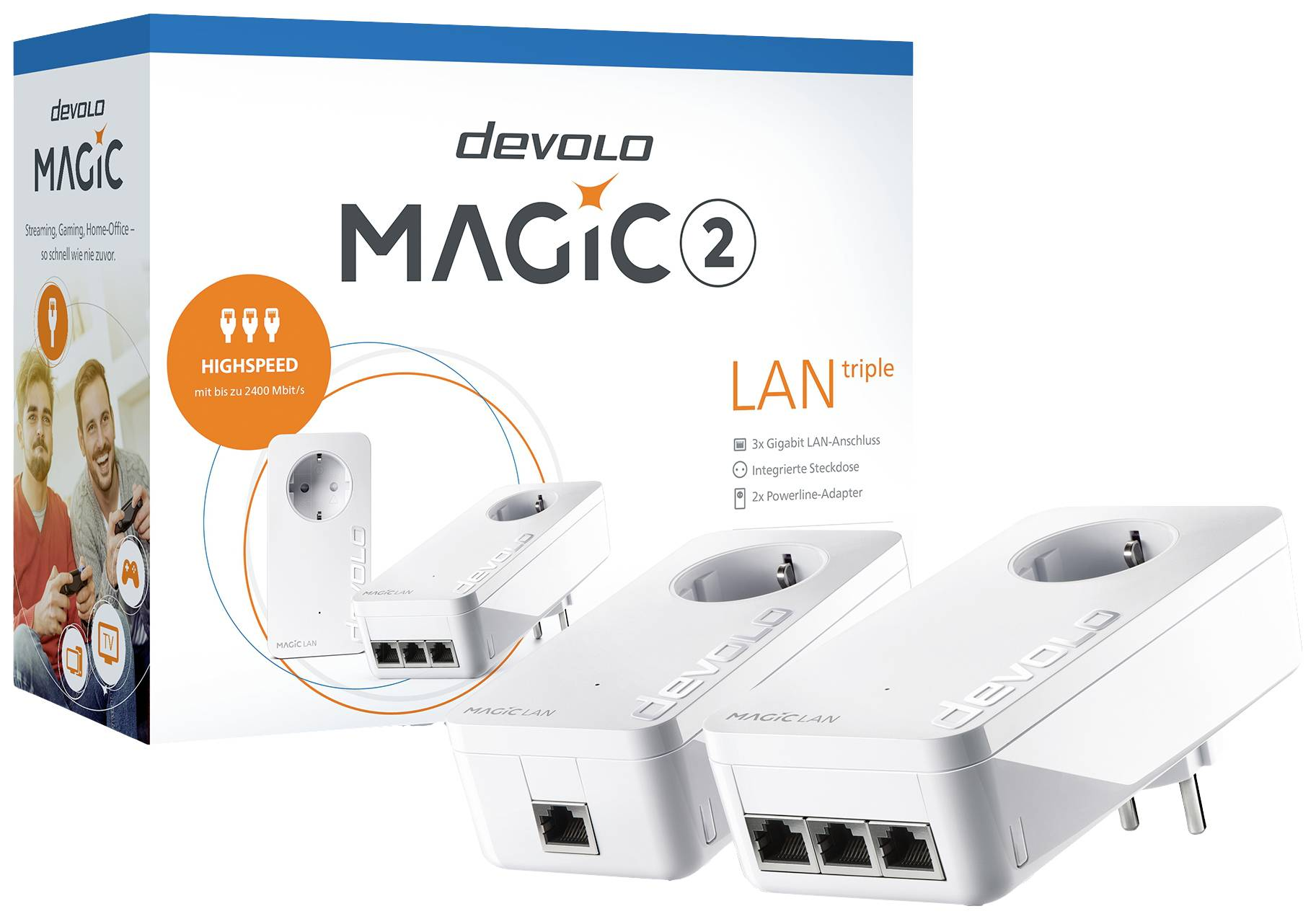 Mivel a Magic 2 LAN hármas adapteren három Gigabit LAN port található, egy hálózati csatlakozóadapter bőven elegendő ahhoz, hogy például a nappaliban lévő teljes multimédiás központtal internetkapcsolatba léphessen. Jelzavar? – A Powerline hálózatban alig van ilyen (különösen a hagyományos WiFi kapcsolathoz képest).