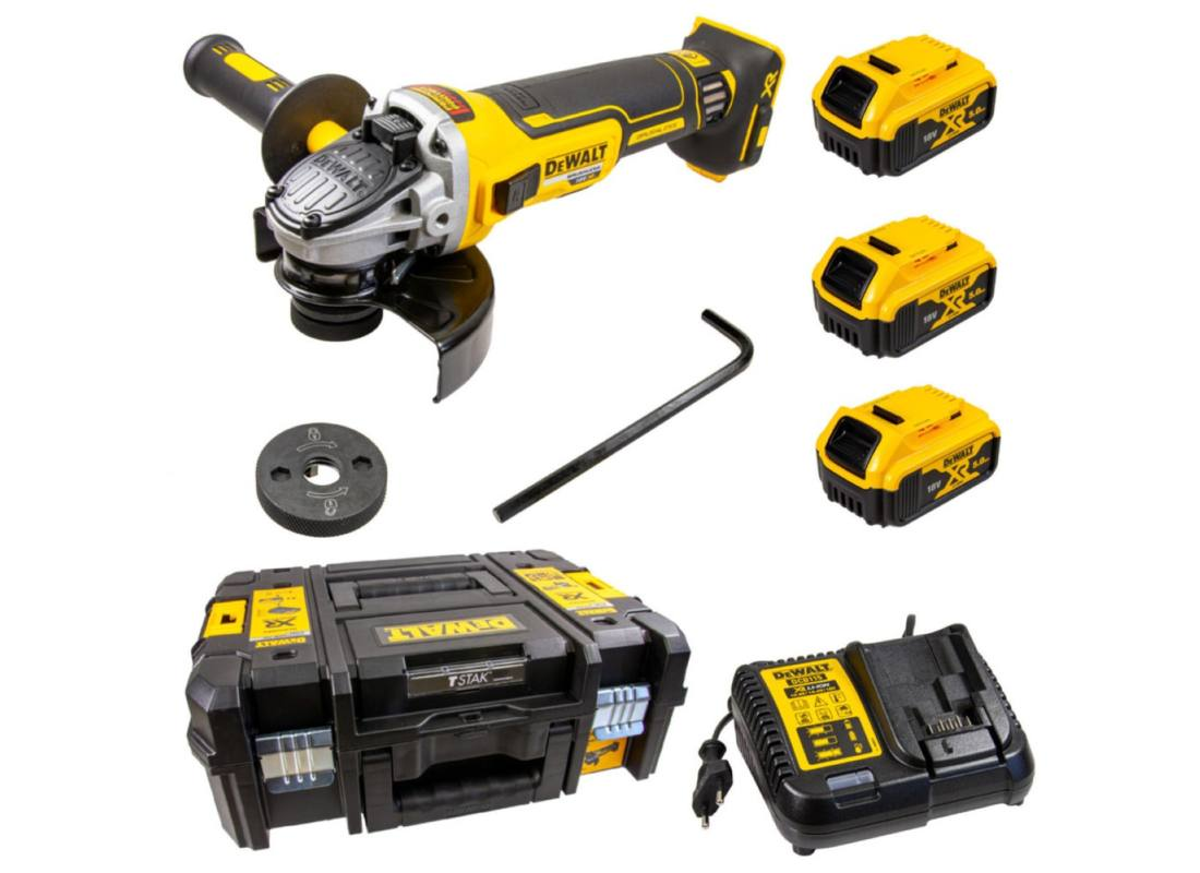 Dewalt DCG405P3 szénkefe nélküli akkus sarokcsiszoló (3 x 5.0 Ah Li-ion akkuval, kofferben)