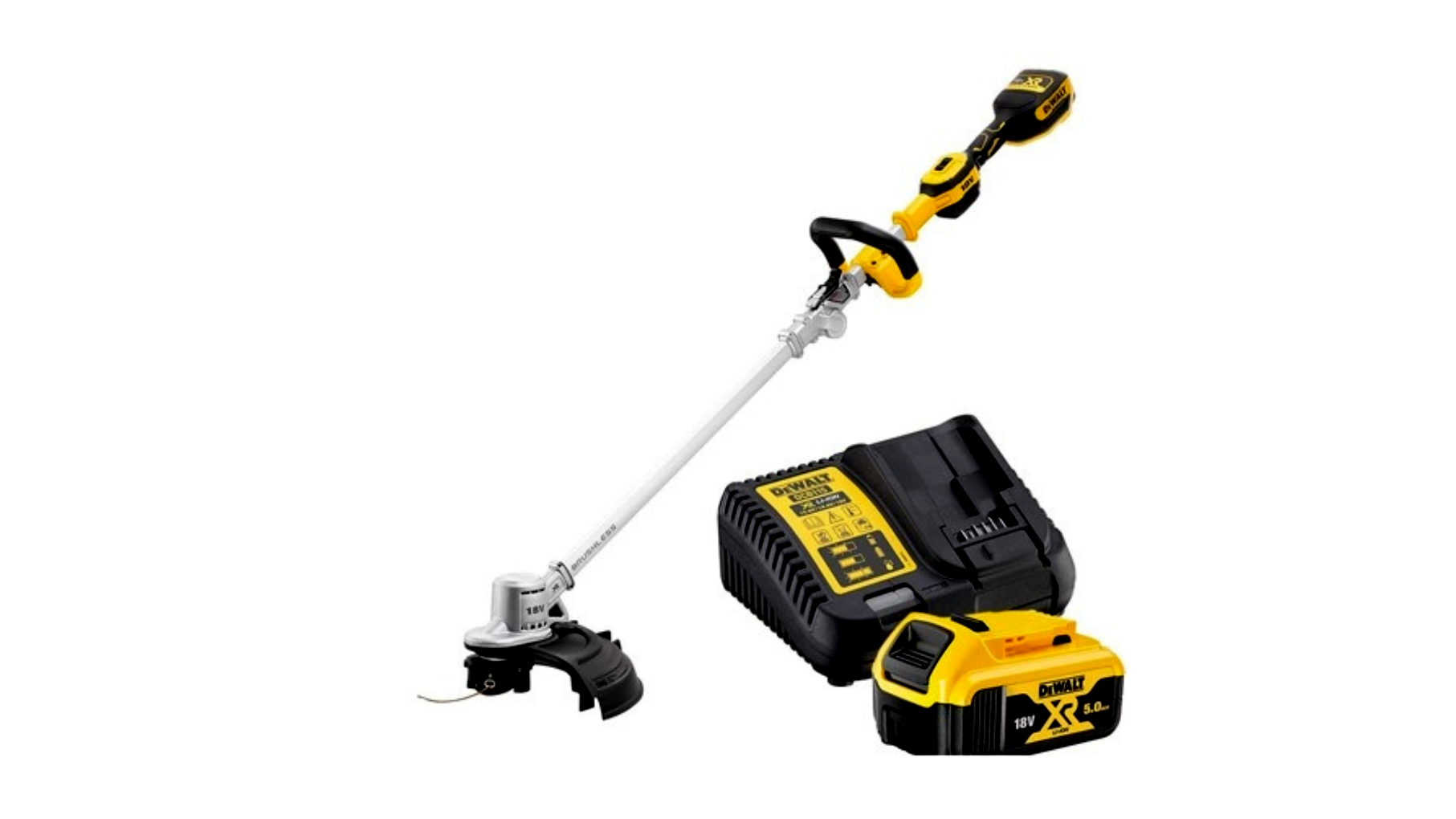 • 1 db 18 V 5,0 Ah XR Li-Ion akkumulátor • 1 db töltő • Teljes géptest vágófejjel és védőburkolattal • Szétszehető fogantyú