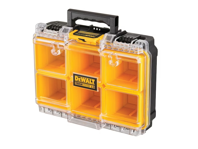 Optimális szervezés a ToughSystem 2.0 mély, kompakt rendszerzővel. 6 db kivehető, rendező rekesszel rendelkezik, a rendező rejestejet a rétegelt lemez elválasztók behelyezésével személyre szabhatja, hogy a legjobban megfeleljen igényeinek. IP65-ös por- és vízállósággal védett, és az átlátszó fedélen keresztül látható a rendszerező tartalma. Kényelmesen hordozhatja a ToughSystem 2.0 mély, kompakt rendszerzőt a felső fogantyújánál fogva, vagy csatlakoztathatja bármely ToughSystem 2.0 termékhez a szabadalmaztatott, automatikusan csatlakoztatható oldalsó reteszekkel. A ToughSystem 2.0 mély, kompakt rendszerző bármely ToughSystem 2.0 termékkel kompatibilis.
