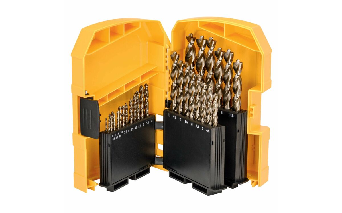 A DeWalt fémfúró készlet 8%-os kobalt tartalmával biztosítja a hosszú élettartamot és a lenyűgöző vágóélt: