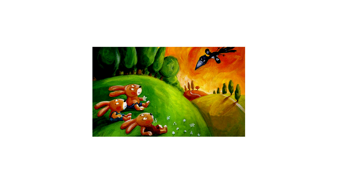 A három nyúl, klasszikussá vált verses mese a hiszékenységről. A diafilmet Szalmai Edit rajzai illusztrálják.
