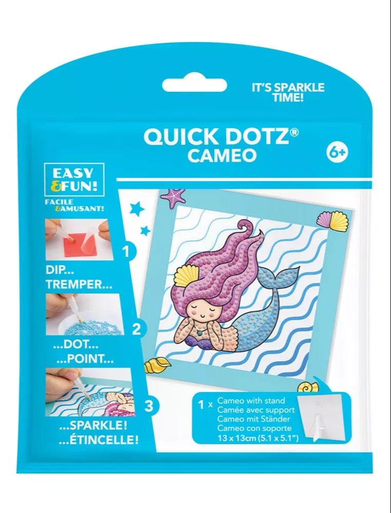 A Diamond Dotz QuickDotz képkészítő készlet lehetőséget ad arra, hogy saját kezűleg készítsen csillogó gyöngyökkel díszített sellő képet. A készlet minden szükséges eszközt tartalmaz ahhoz, hogy az alkotókedvét teljes mértékben kiélhesse, miközben szép dekorációt hoz létre otthonába vagy ajándékba szeretteinek.