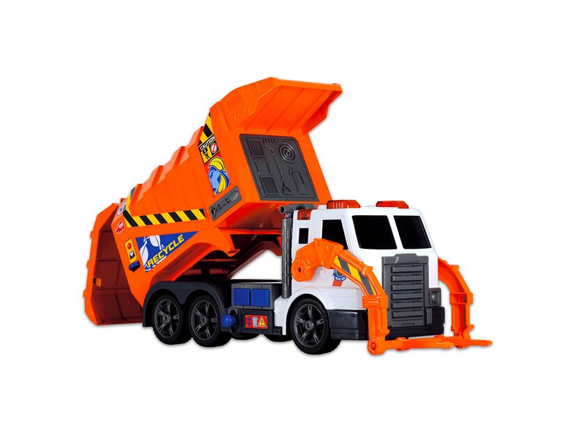 Tisztítsd meg a várost a narancssárga kukásautóval! Az autó jó minőségű műanyagból. Nyomd meg az oldalán lévő kék gombokat és máris életre kell! Az oldalán lévő kis kék kar lenyomásával a kukásautó motorja könnyedén beemeli a szemetes konténerek és beönti a tartalmát rakterébe. A hátsó kis karral pedig a raktér ajtaját nyithatod ki. A kukásautó mérete: 19 x 41 x 14 cm.