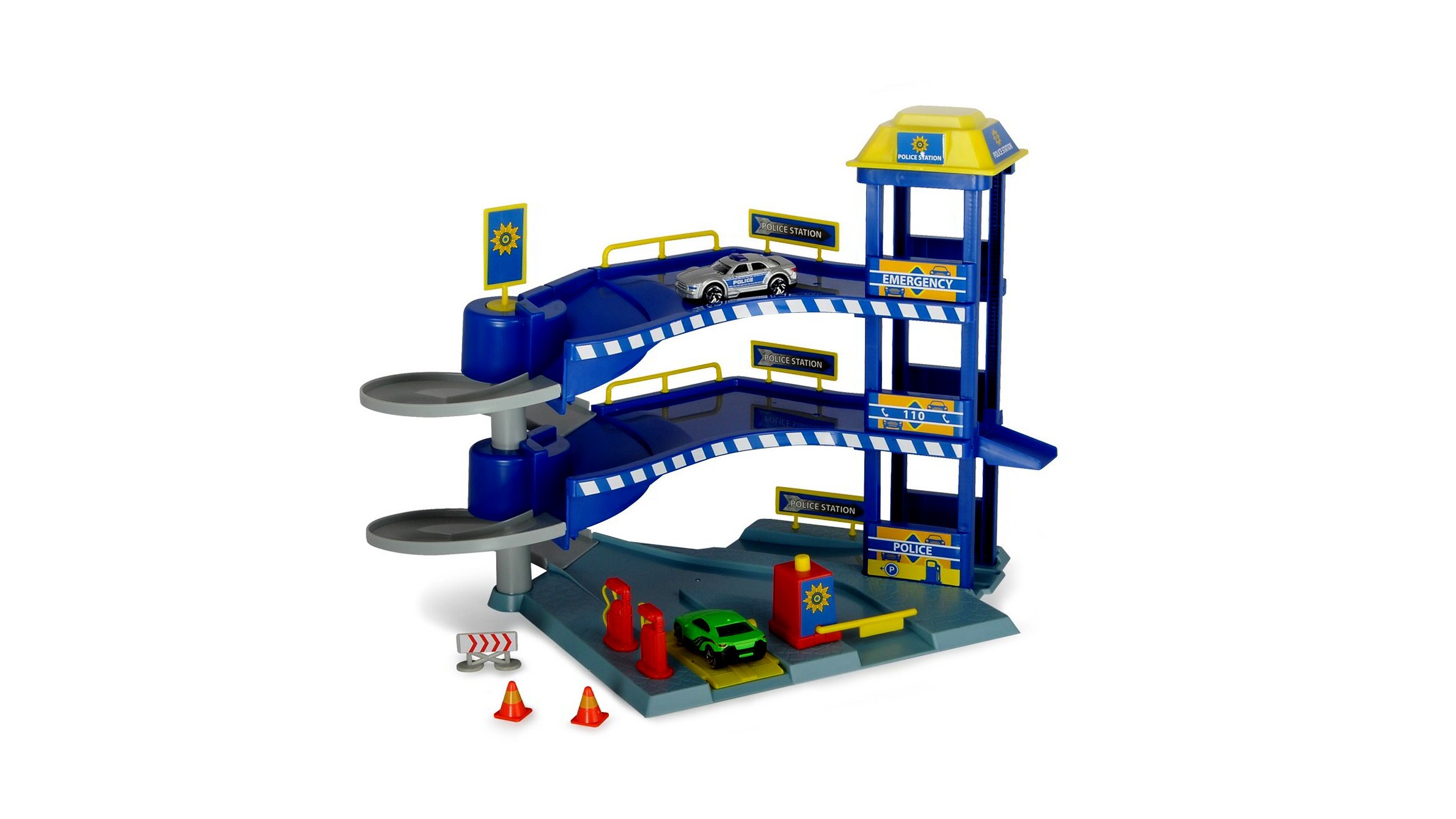 A Dickie Pakolóház játékszett több egyszerű garázsnál, ugyanis rendőrségi járműveknek ad otthont. A parkolóház háromszintes, emellett bójákat és terelőtáblákat is tartalmaz, hogy a sofőrök biztosak lehessenek abban, hogy melyik a helyes haladási irány. A parkolóház bejáratát felnyitható sorompó őrzi, valamint egy emelő is helyet kapott benne, hogy ha meghibásodnának a járgányok, hamar orvosolni lehessen a problémát. Az állomás manuálisan mozgatható lifttel van felszerelve, hogy az öregebb verdáknak se legyen megterhelő a legfelső szintre jutni. A csomagban 2, javarészt fémből készült jármű is található, így a gyerekek különböző történeteket játszhatnak el, amely fejleszti képzeletüket, fantáziájukat, kommunikációs készségüket és kreativitásukat.