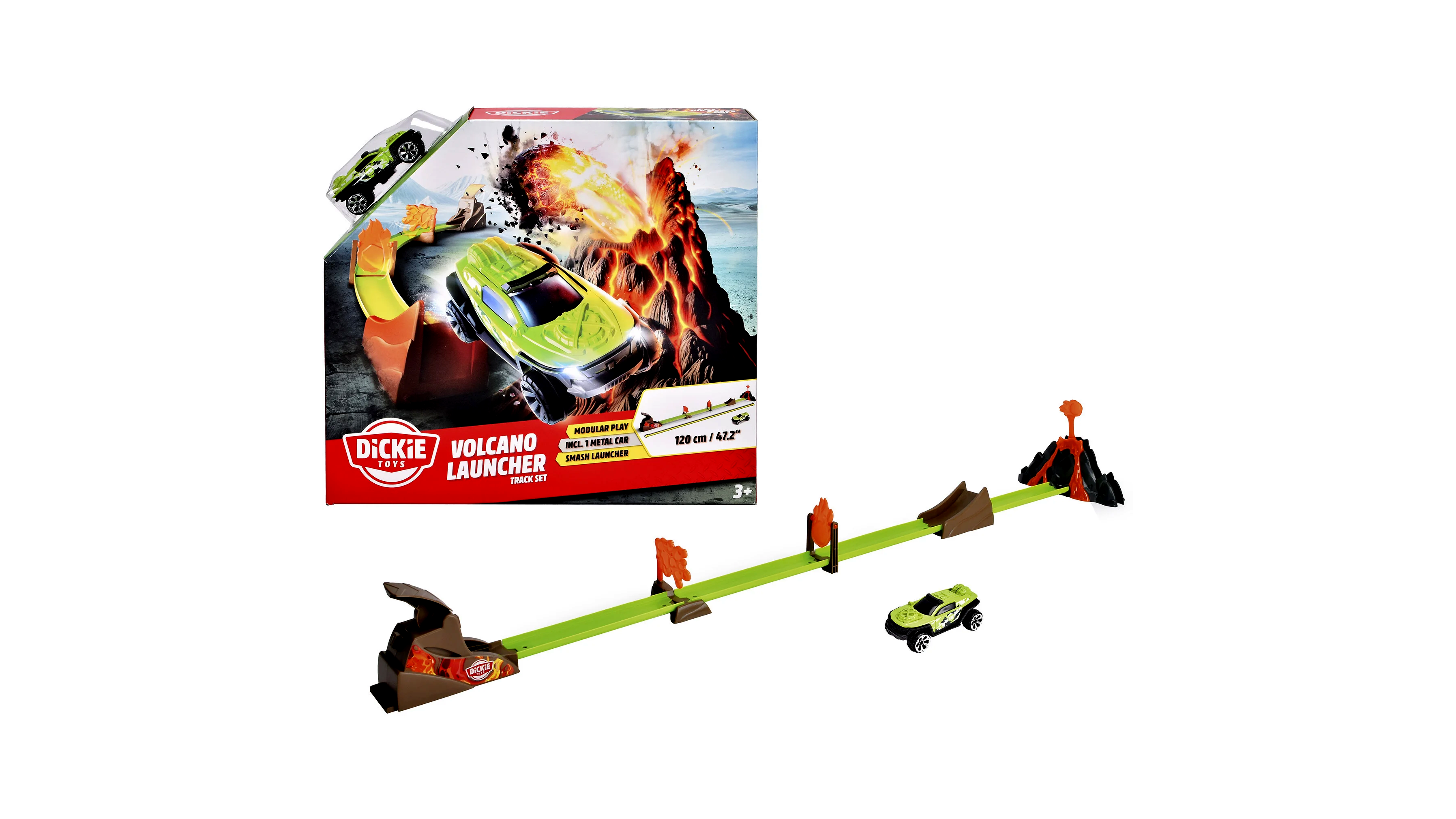 Éld át a vulkánkitörés izgalmait és versenyezz a leggyorsabb autóval a Dickie Toys pályakészlet segítségével!