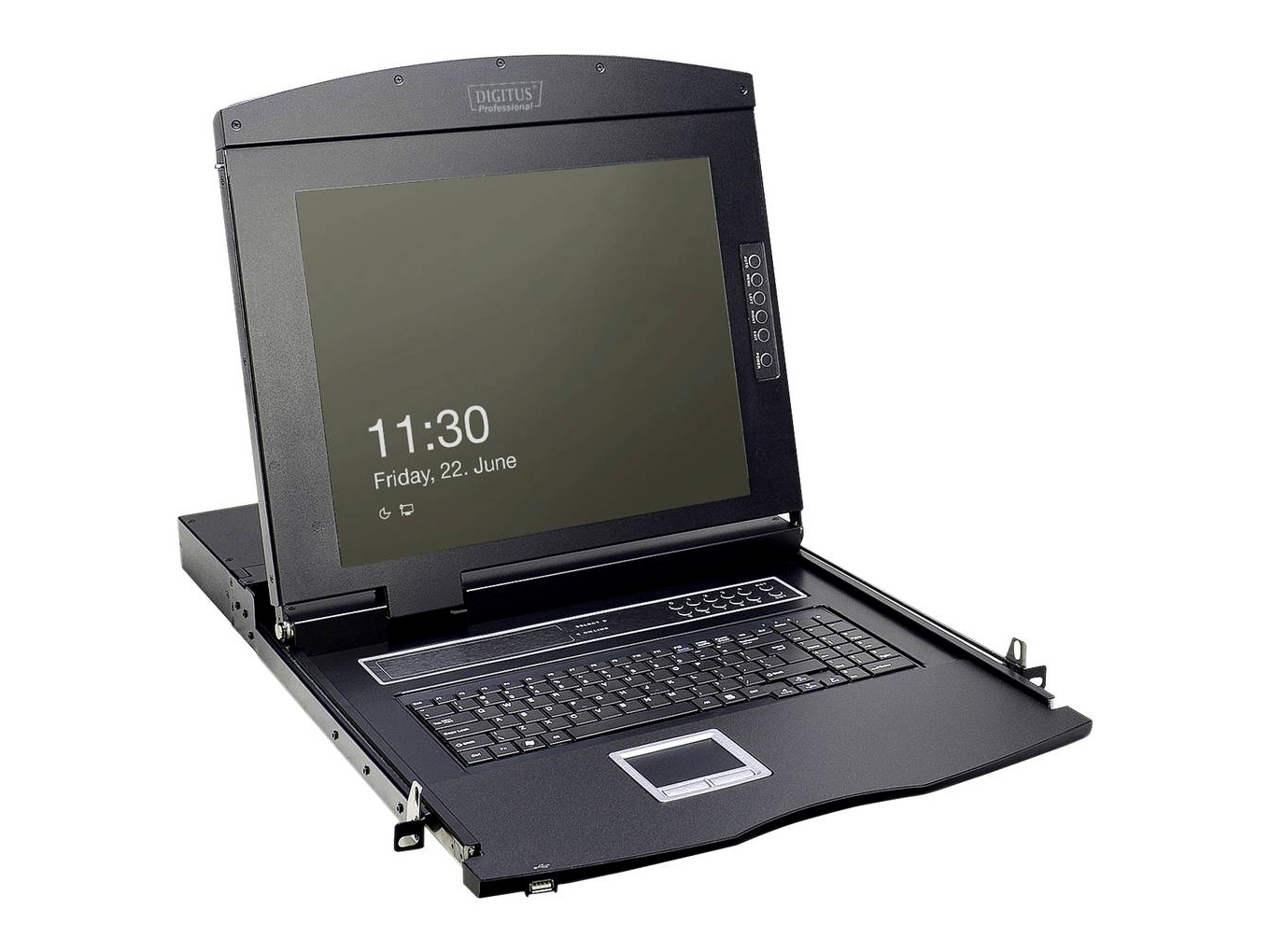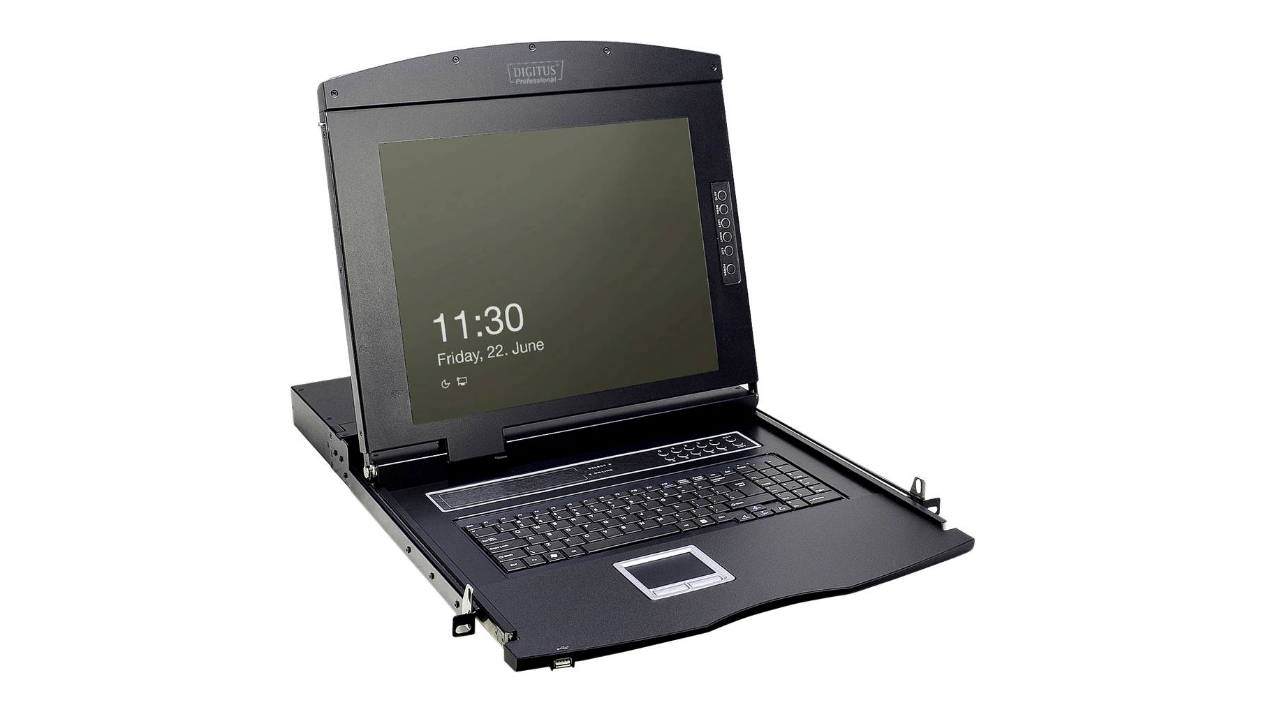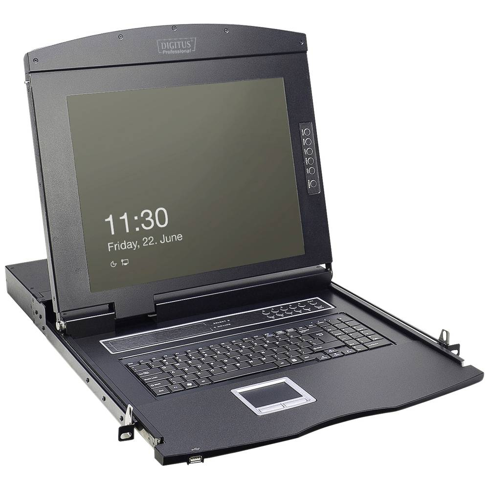 Moduláris kialakításának köszönhetően a DIGITUS 19 "TFT konzol számos egyedi konfigurációs lehetőséget kínál, így azt a konzol alkalmazási területéhez igazítani lehet. Ez elmenti a konzolt, és bármikor frissíthető vagy bővíthető további modulokkal. A rugalmas konfiguráció biztosítja, hogy a konzol jövőbiztos legyen. A moduláris konzol egy 19 hüvelykes monitorból, 8 portos KVM kapcsolóból, egy billentyűzetből és az érintőpadból áll.