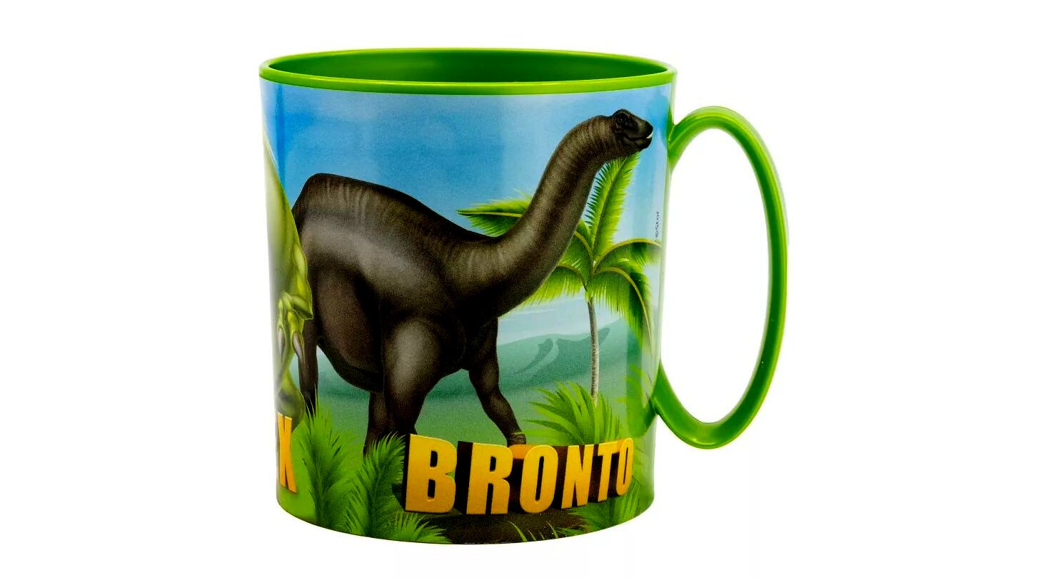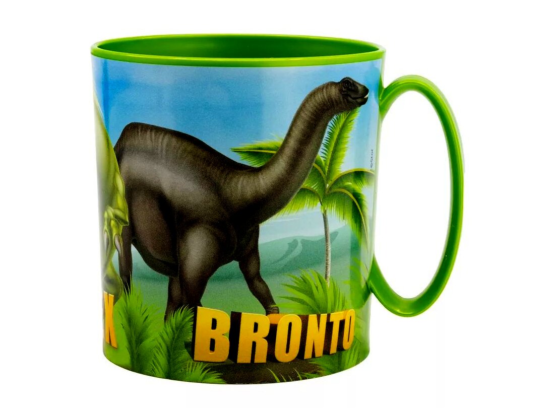 - Dinoszaurusz mintás dizájn: A bögre dinamikus és színes dinoszaurusz mintával van díszítve, amely minden korosztály számára vonzóvá teszi.