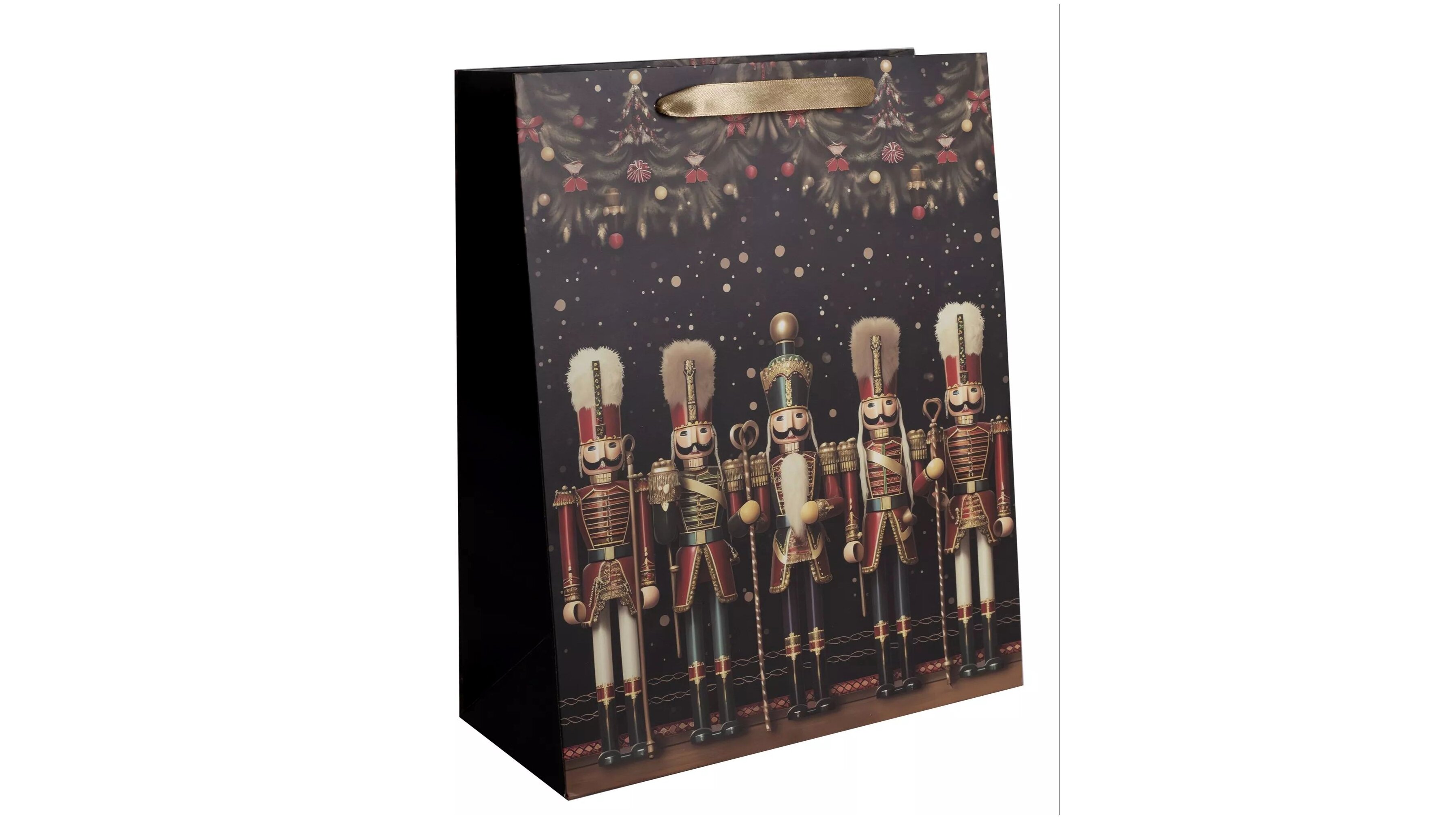Az ajándékzacskók előnye, hogy nincs szükségük ragasztóra vagy celluxra, ezért az ajándékok becsomagolása könnyebb és gyorsabb. A diótörő figura, amely erre a papírtasakra került, az ünnepi hagyományok egyik ikonikus alakja. A Diótörőt először E.T.A. Hoffmann „A diótörő és az egérkirály” című meséje tette híressé, majd Csajkovszkij balettje emelte ikonikus státuszba. A diótörő formájú ajándéktasakok és díszek ezen mesés és balett hagyományokat hozzák el otthonunkba.