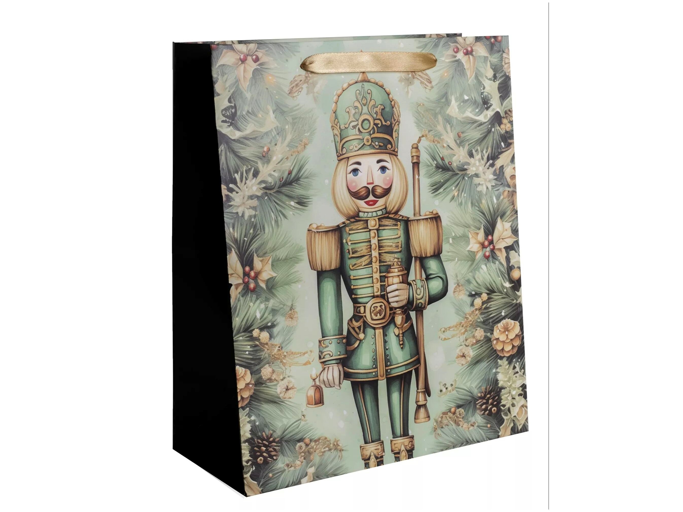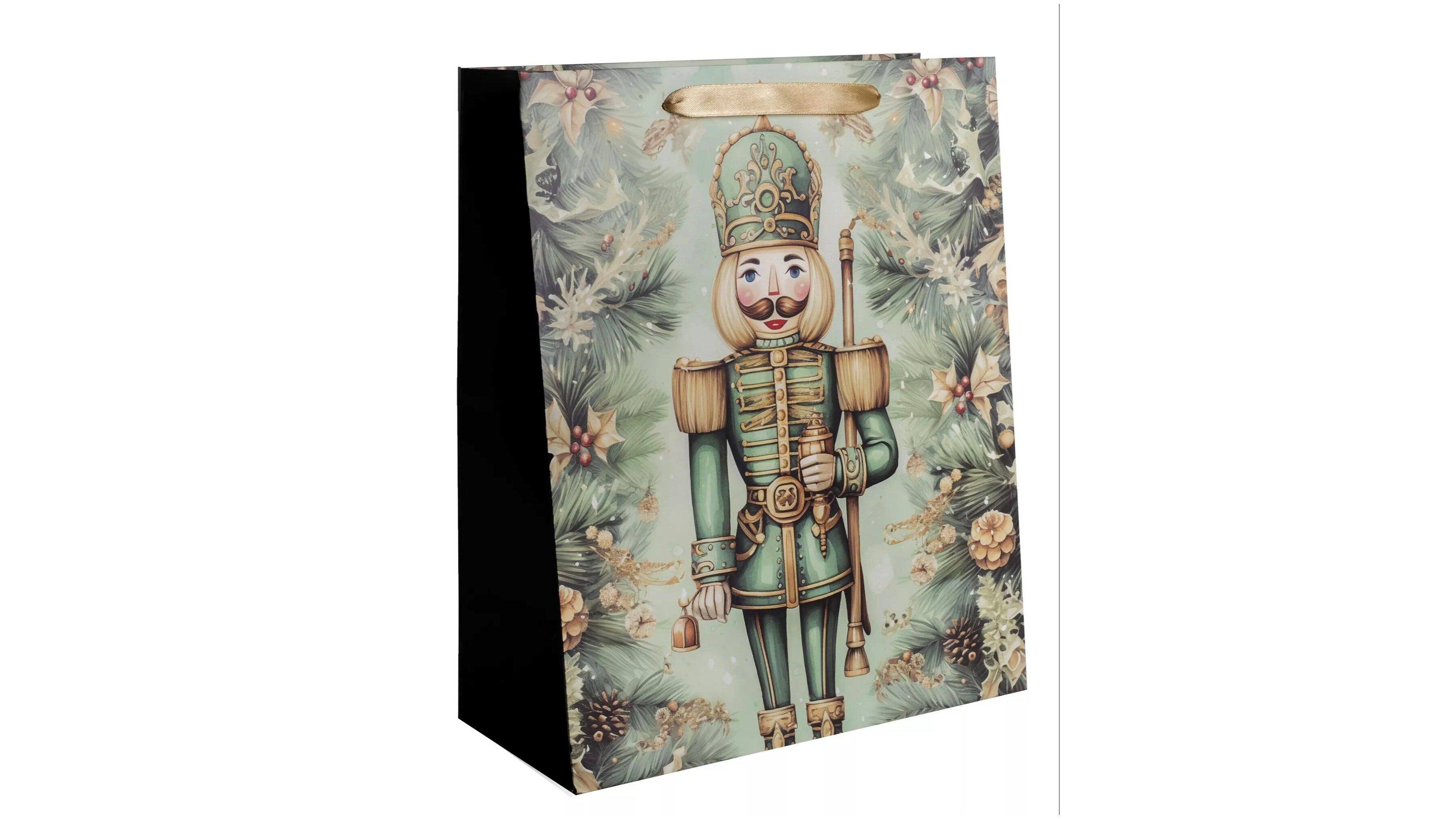 Éld át az ünnepi varázst ezzel a gyönyörű, diótörőt ábrázoló ajándékzacskóval. A szalagfüllel ellátott tasak nemcsak praktikus, hanem stílusos is, így tökéletes kiegészítője bármely ajándéknak. Legyen az ünnep még boldogabb, vidámabb és édesebb ezzel az elegáns ajándéktasak segítségével. Ráadásul a többszörös felhasználásnak köszönhetően kevésbé károsítja a környezetet, mint a hagyományos csomagolópapír.