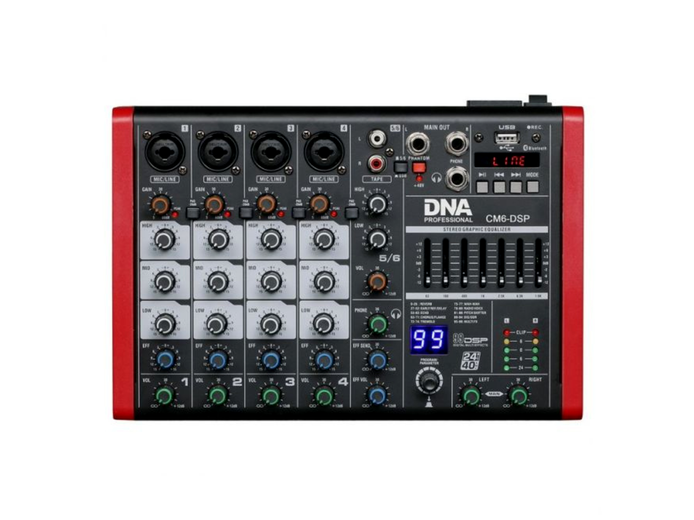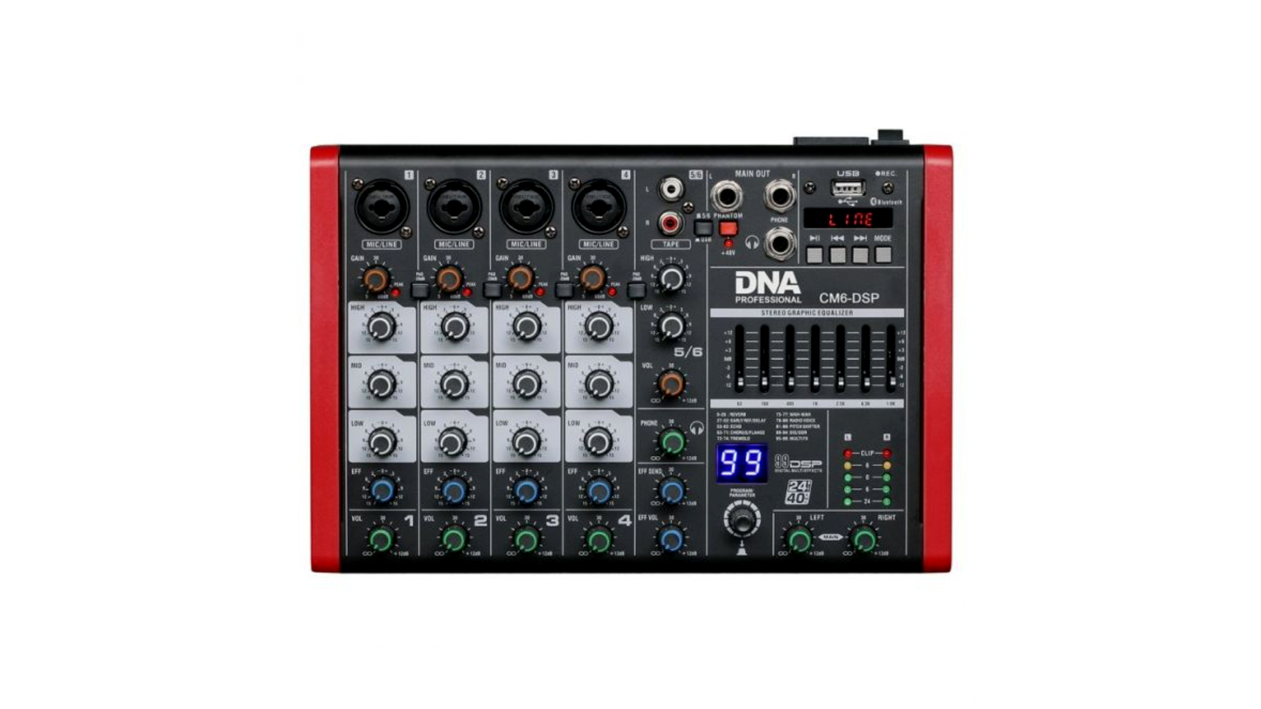 • 99 digitális DSP effekt: zenekari, vokál és DJ felhasználásra optimalizált effektek a profi hangzásért.