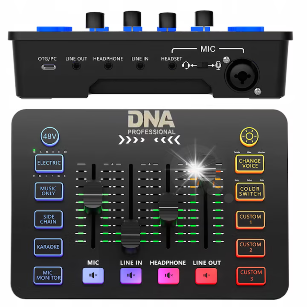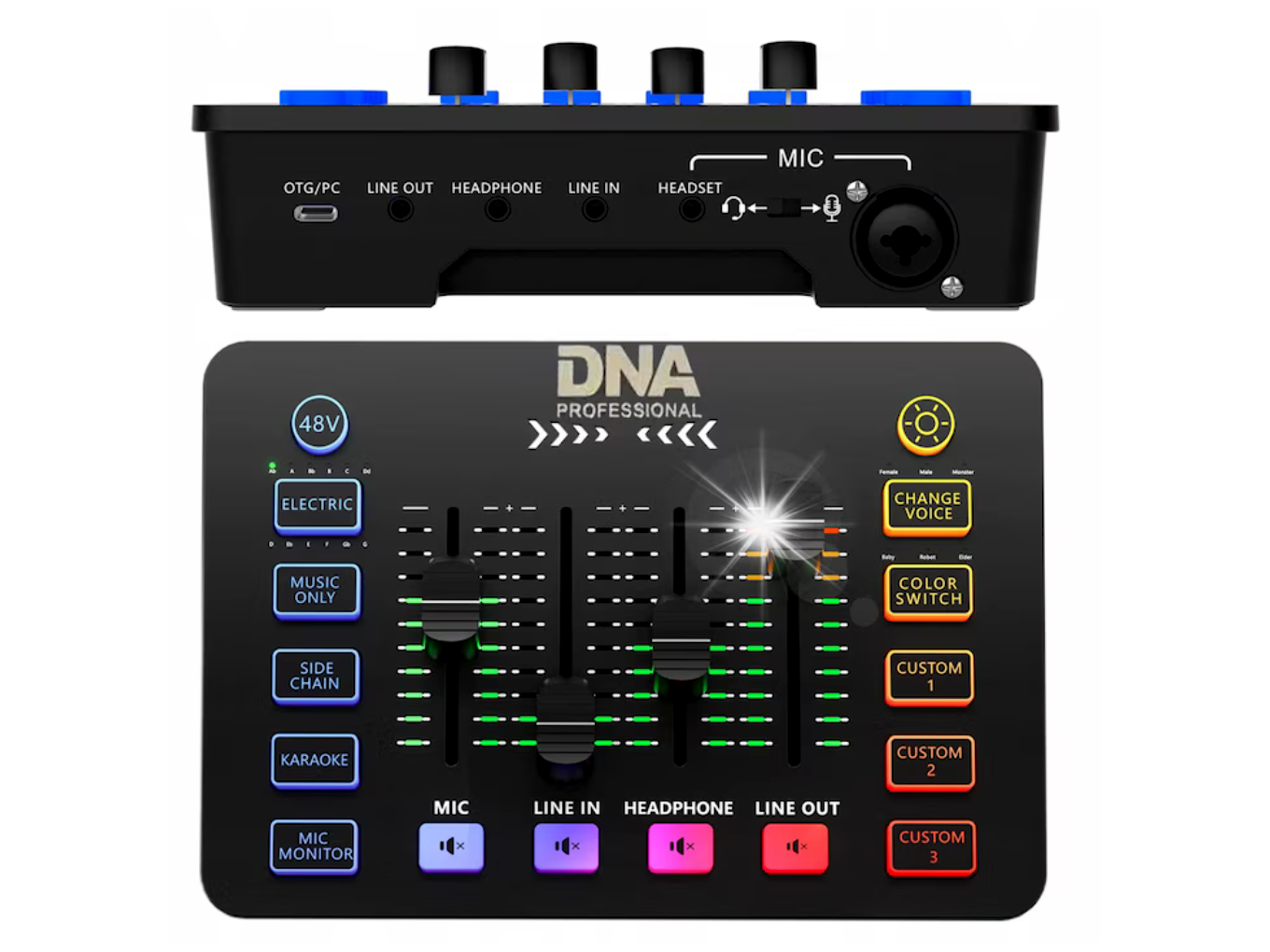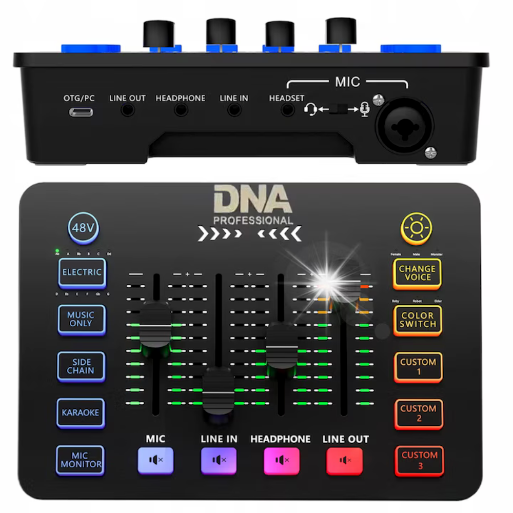 A DNA Professional kétcsatornás analóg audiokeverője ideális választás mindenkinek, aki otthon is stúdióminőségű hangot szeretne: streamereknek, podcastereknek, oktatóknak, énekeseknek és gamereknek. A beépített hangeffektek, a hangváltó funkció, az RGB világítás és a fantomtáp olyan kombinációt alkotnak, amelyből professzionális és szórakoztató műsorokat készíthet, bárhol is dolgozik.