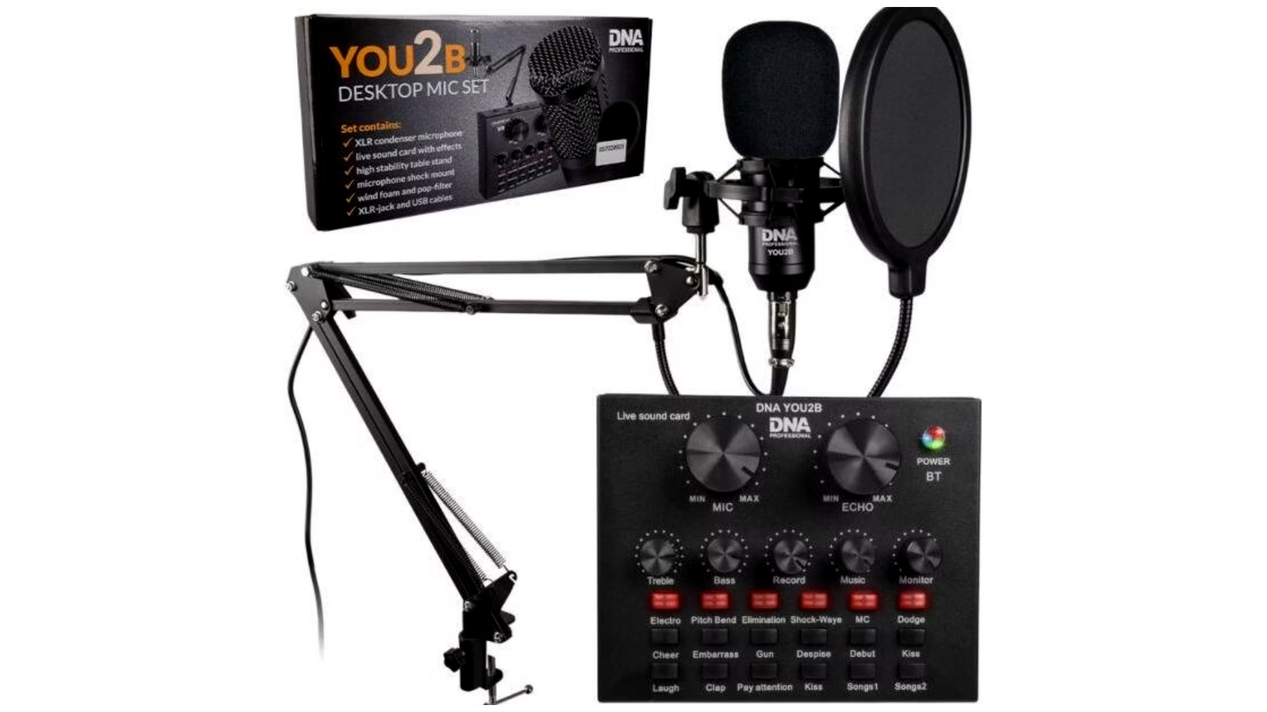 • Otthoni felvételekhez már az is sokat számít, ha a mikrofon mögé puhább felületek (függöny, könyvespolc, textil) kerülnek – ez csökkenti a visszaverődéseket, így még professzionálisabb lesz a végeredmény. A DNA YOU2B szett ezzel kombinálva kis szobában is meggyőző stúdió-élményt adhat.