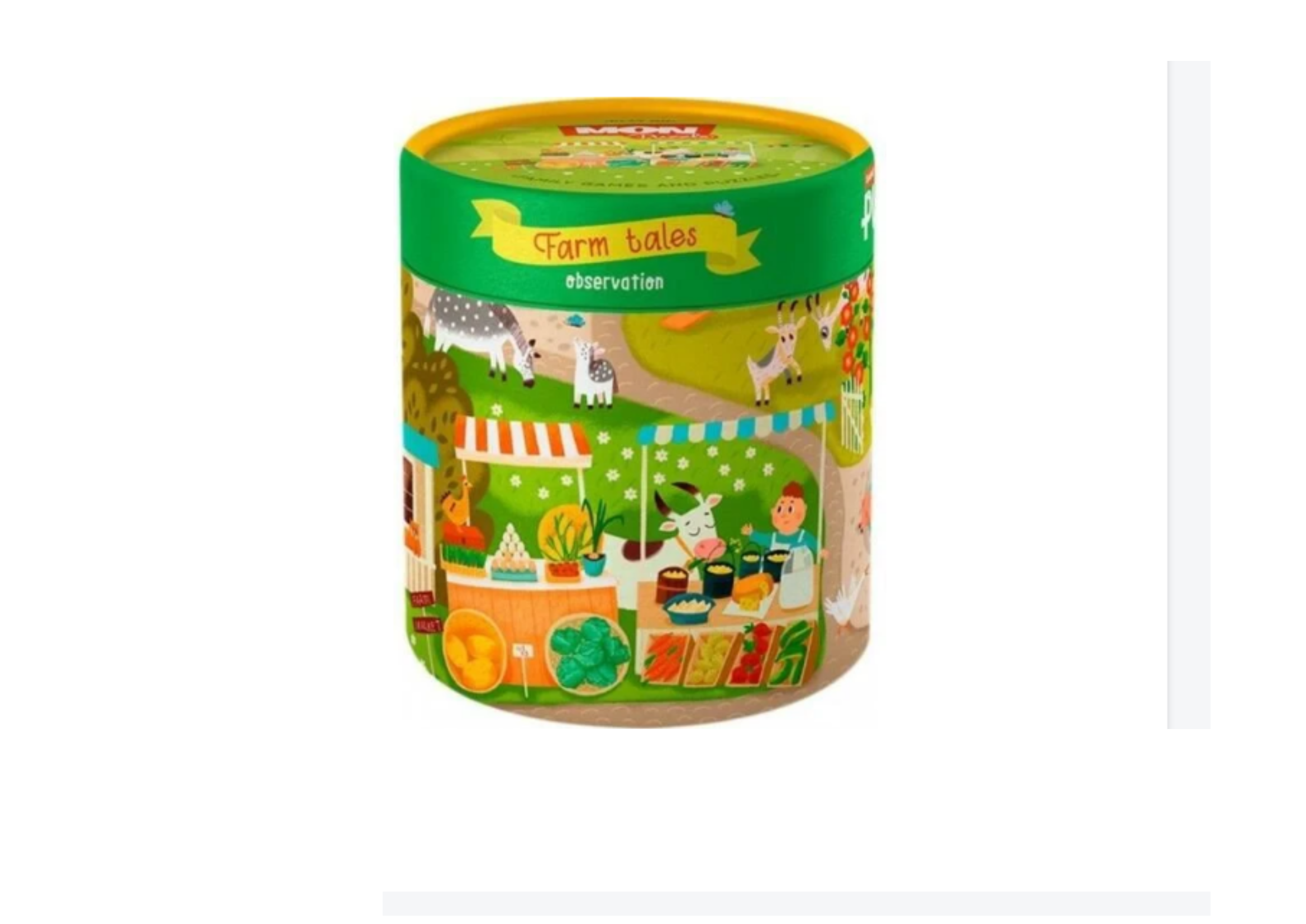 Az egyik oldal egy részletgazdag farm életképet ábrázol, ahol a gyerekek megismerhetik a háziállatokat, a gazdaság mindennapjait, és közben gyakorolják a formafelismerést, a térbeli tájékozódást és a koncentrációt. A másik oldalon egy különleges, összekötős játék található: a gyerekek színes vonalakat követve fedezhetik fel, hogy melyik állat mit eszik a farmon. Ez fejleszti a logikus gondolkodást, a megfigyelőképességet és a színek, összefüggések felismerését.
