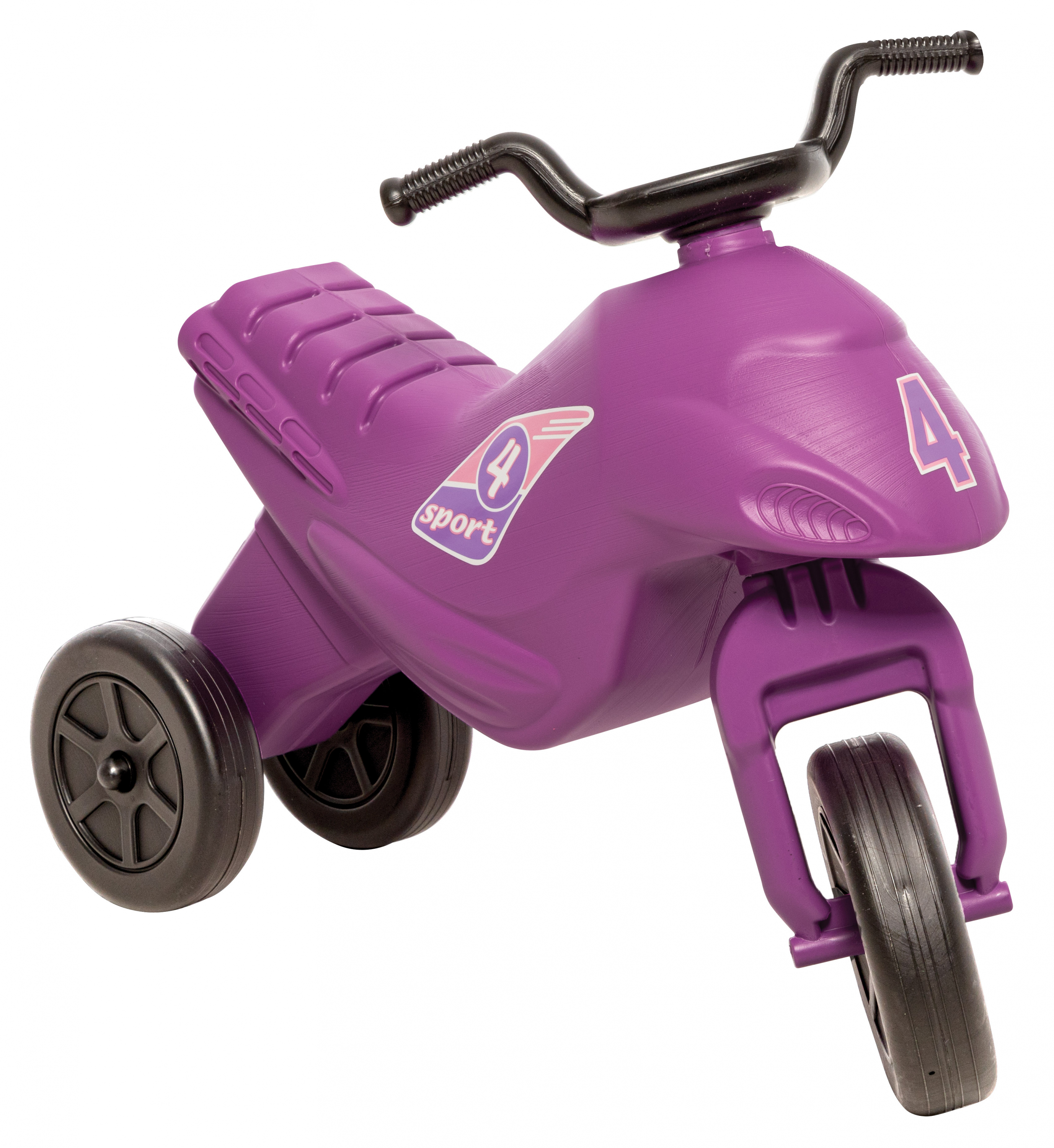 Vagány, egyszerű felépítésű, műanyagból készült lila lábbal hajtós kismotor. Az első kerék kormányozható, és műanyagból készült, a motor matricákkal van díszítve. Méretek: 60 x 28 x 44 cm. A motor 4-es méretkategóriába tartozik. Ülésmagasság: 29 cm.
