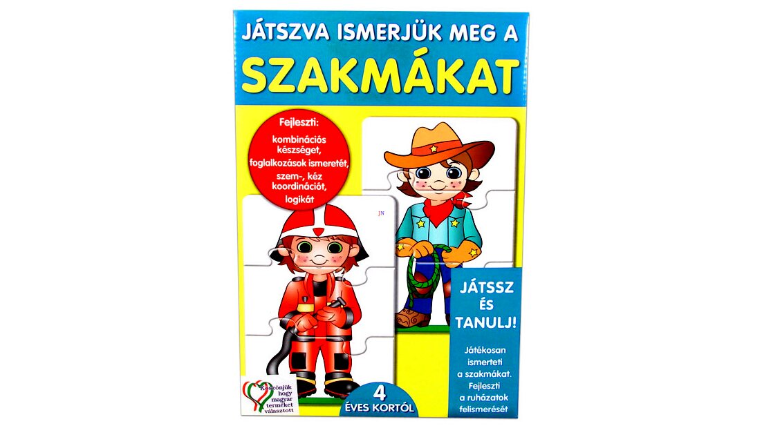 Ismerjétek meg a különböző szakmákat és a hozzájuk járó tipikus öltözeteket a Játszva ismerjük meg a szakmákat oktató játékkal! Ez a kirakós játék tökéletes választás gyerekek számára, akik kíváncsiak a világra, és szeretnék megismerni a legnépszerűbb hivatásokat.