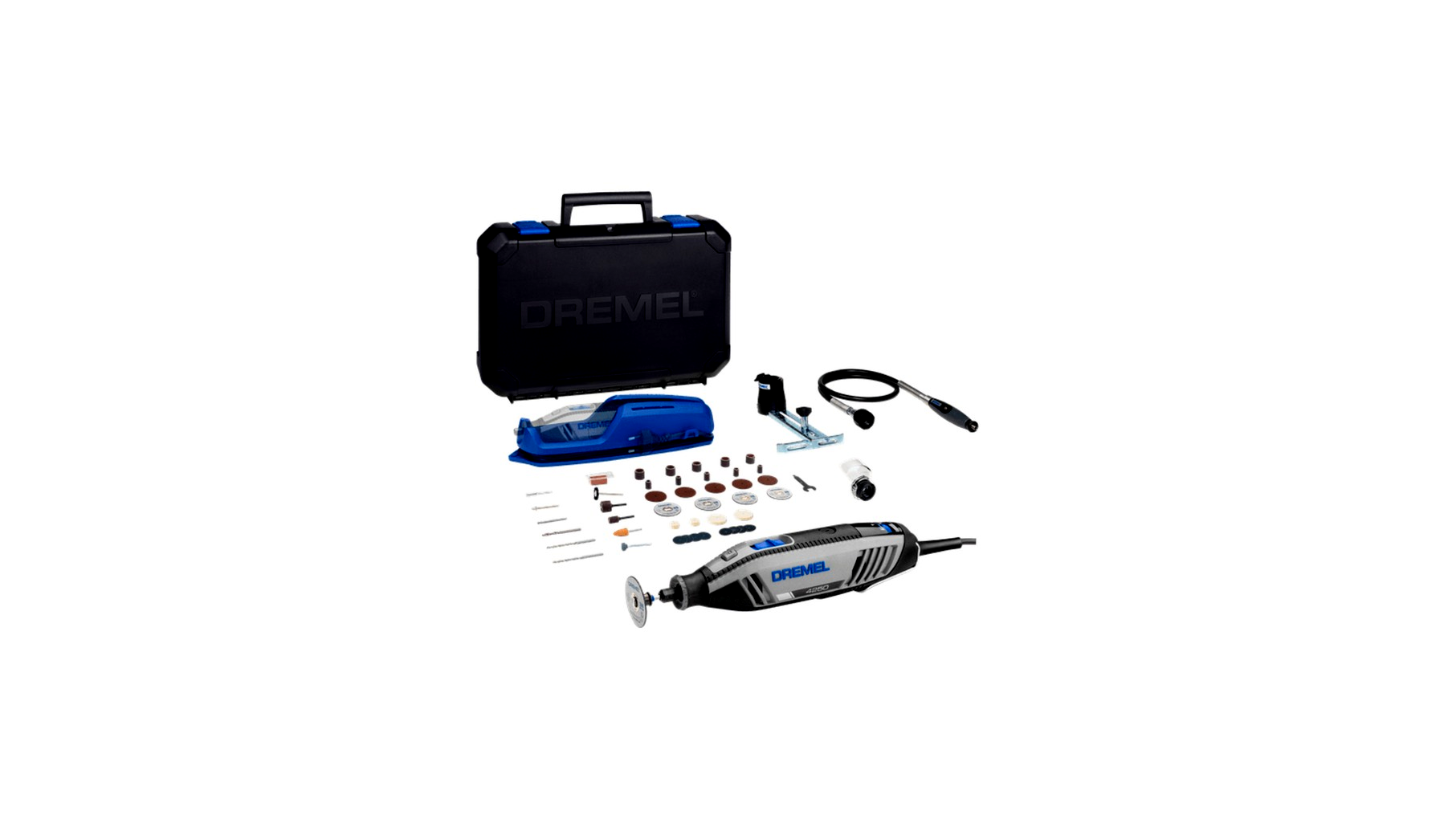 A készlet szívében a nagy teljesítményű Dremel 4250 multifunkciós szerszám található, mely az EZ Twist csatlakozósapkával van ellátva. Az intuitív gombok elrendezése és a gumírozott puha markolat biztosítja a szerszám teljes irányítását és kényelmes használatát minden helyzetben.