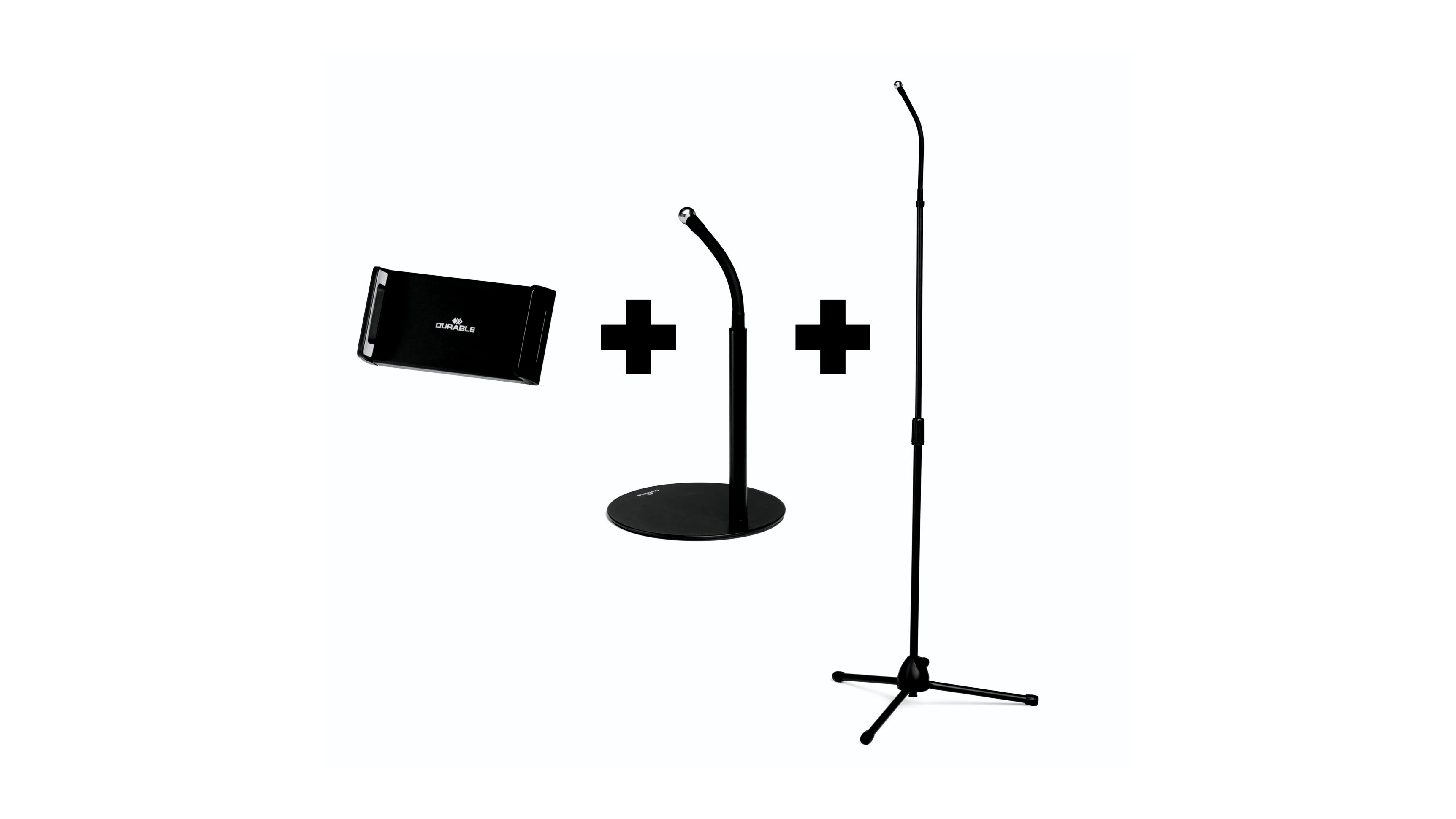 - A bilincsben lévő csúszásgátló párnák stabilan tartják a táblagépet vagy a mobiltelefont, és védenek a karcolásoktól