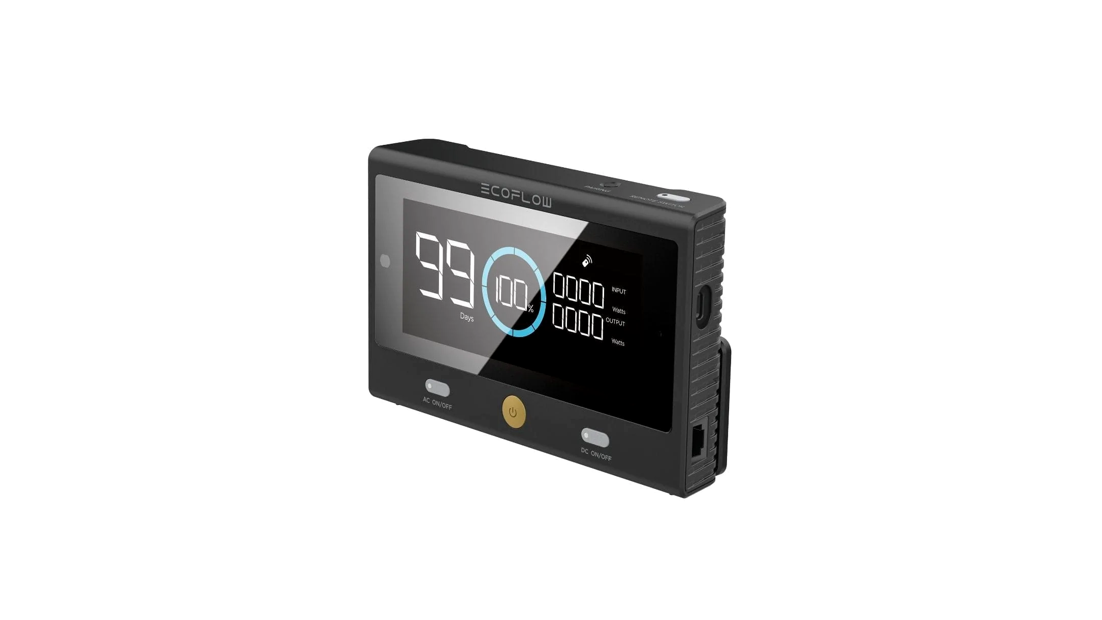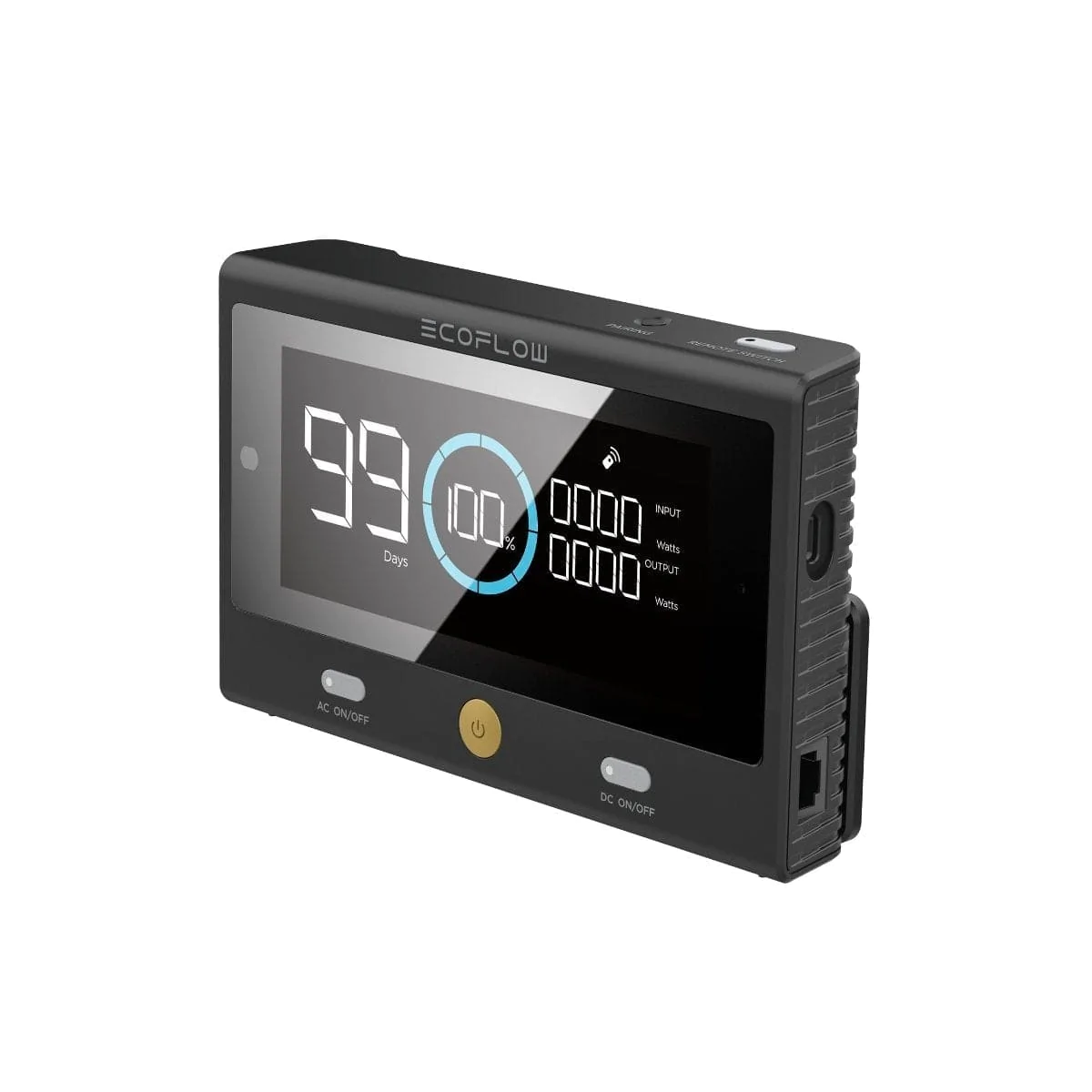Az első távirányító egy hordozható erőműhöz, amelyet a DELTA Pro-hoz terveztek. Ideális a DELTA Pro garázsban, tárolórekeszben vagy a fedélzet alatt történő tárolásához. Csatlakoztassa Bluetooth-on vagy ethernet-kábelen keresztül, és kap egy második képernyőt ott, ahol szüksége van rá.
