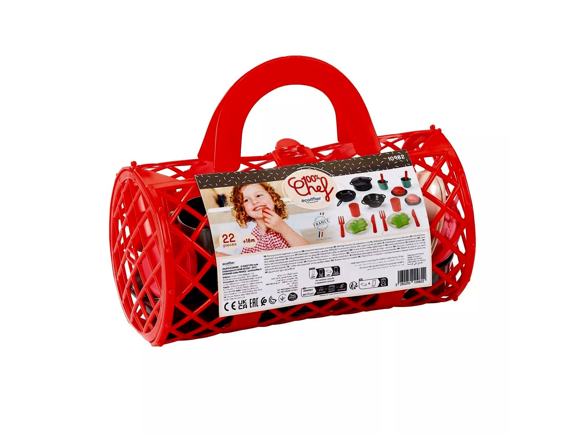 Ez a fantasztikus 22 darabos edénykészlet táskában minden gyermeket levesz a lábáról! Ideális játék a legkisebbek számára, hogy kreativitásukat és fantáziájukat fejleszthessék, miközben élvezik a játék közös élményét. Egyaránt alkalmas beltéri és szabadtéri használatra, így tökéletes kiegészítője lehet bármilyen pikniknek vagy konyhajátéknak.