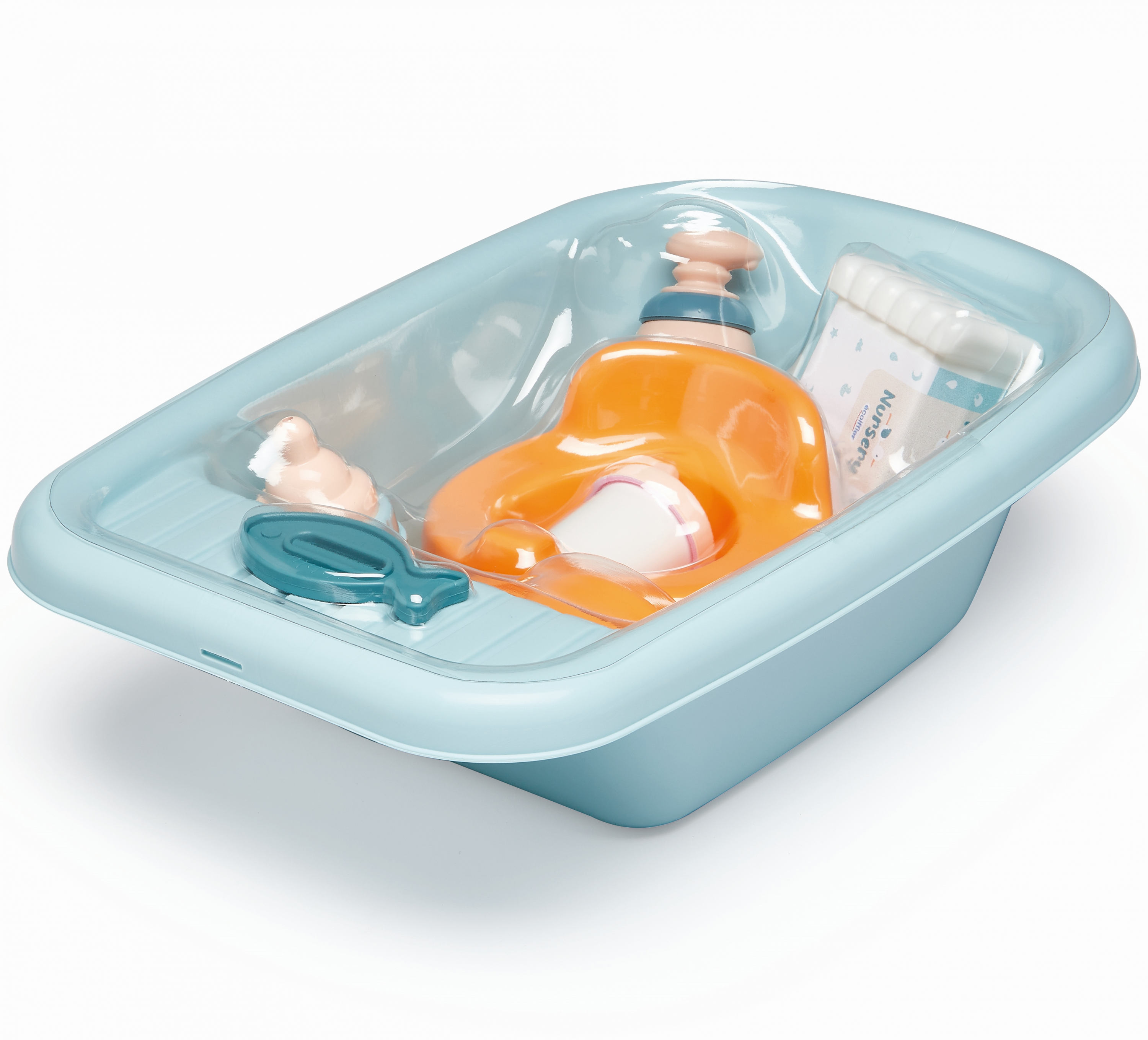 Az Écoifer babafürdető szettel a gyerekek gondját viselhetik a babáiknak. A kék színű szett segítségével bármikor megfürdethetik őket, a cumisüveggel pedig megetethetik a babákat. A színes, 8 darabos fürdetőszett tartalmaz egy bilit, egy halacska formájú hőmérséklet mérőt, cumisüveget és még sok másik kiegészítőt is, így még élvezetesebb lesz a játék.