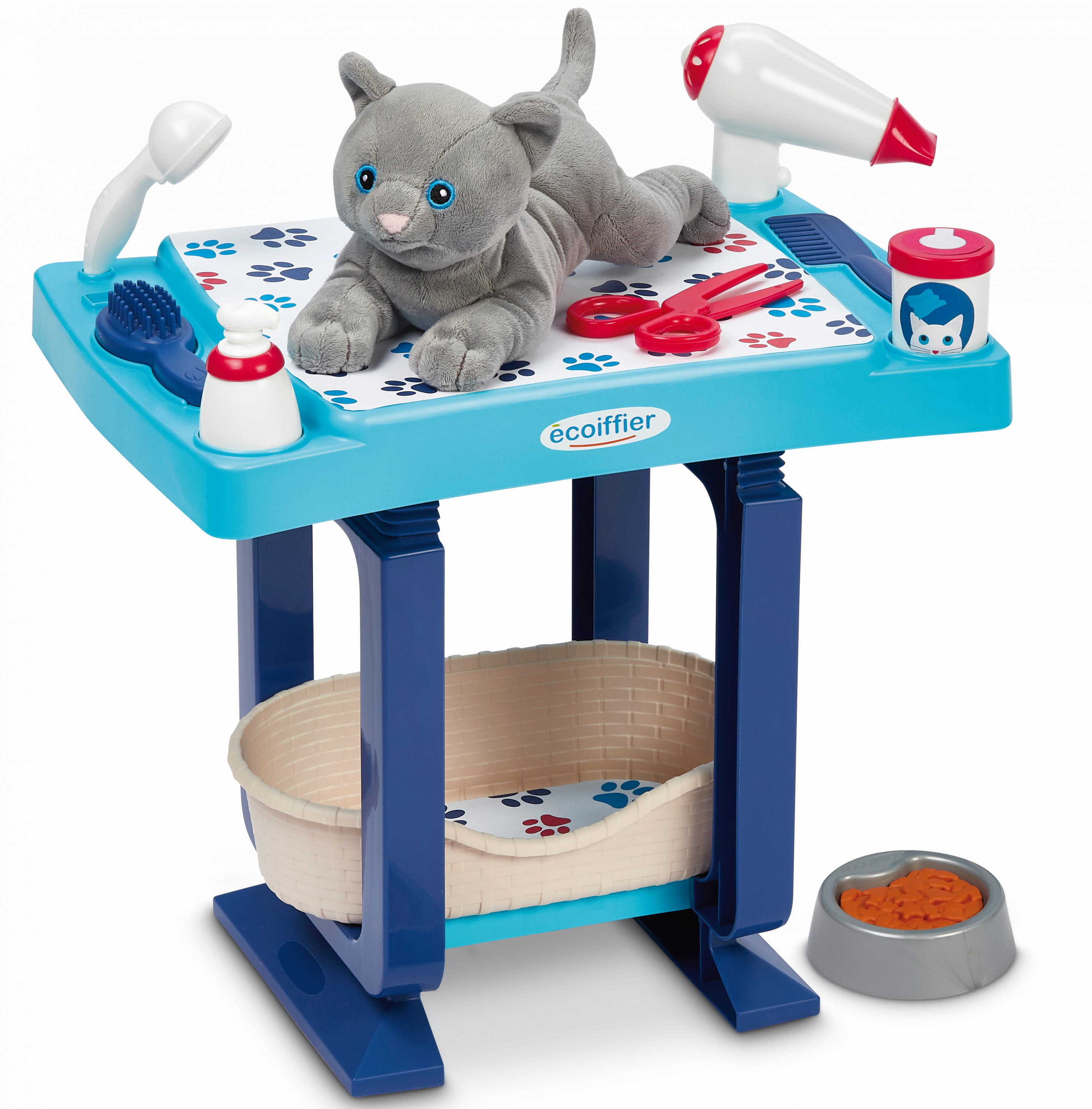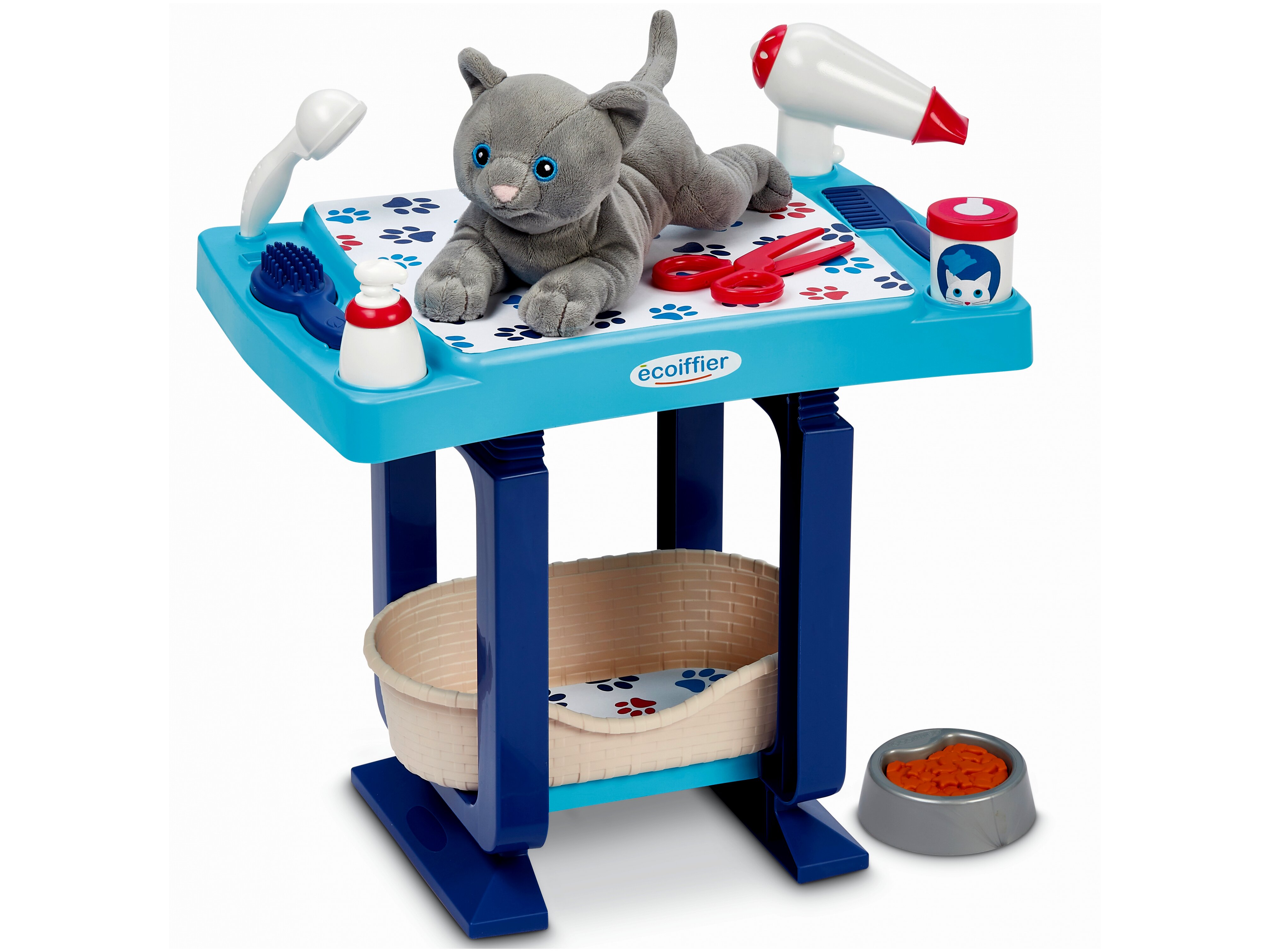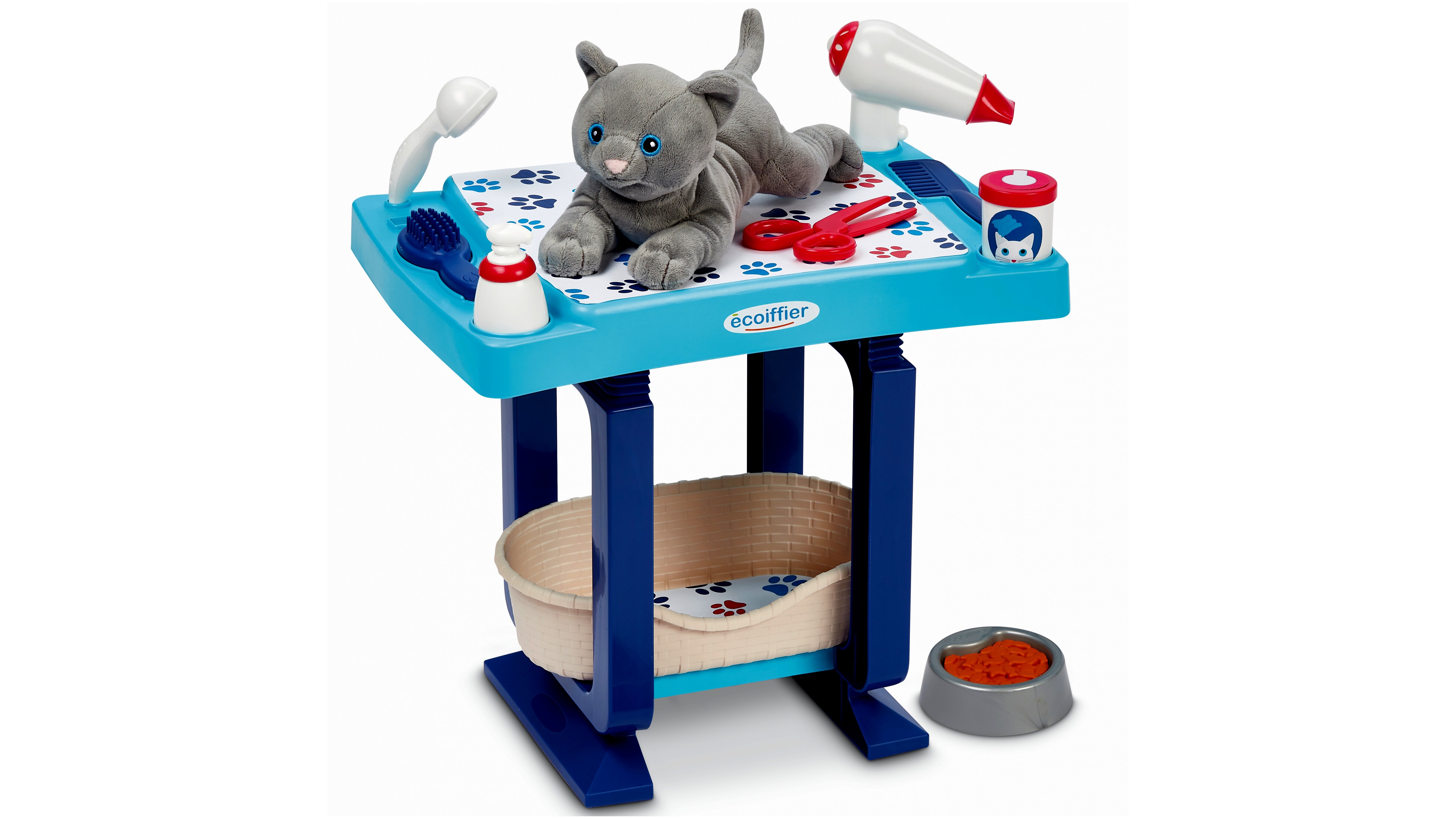 Az Écoiffier állatorvosi gondozóasztal játékszettel könnyen "tisztán" és ápoltan tarthatók a plüssök.