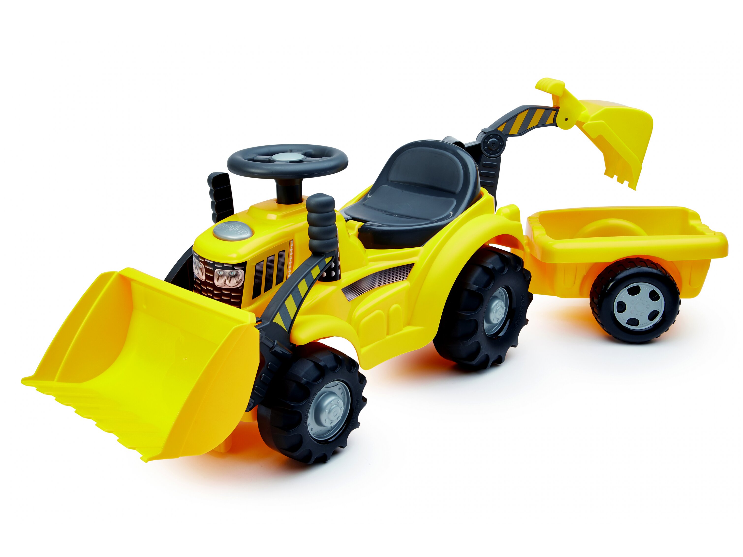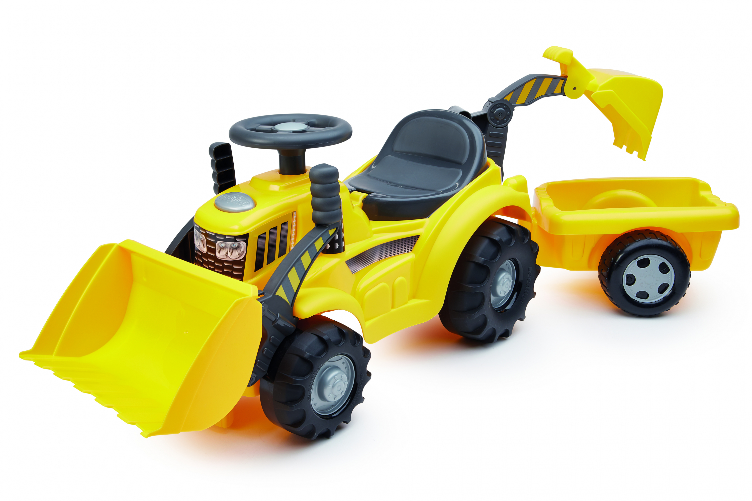 Méghozzá nem akármivel! Erre az emelőkanállal és utánfutóval ellátott bébitaxira garantáltan rátapadnak a tekintetek. Már maga a kinézete is impozáns, azonban a jármű a homokozó sztárja is lehet, ugyanis mind az első, mind a hátsó lapátja mozgatható, a lecsatolható utánfutóba pedig kényelmesen elfér a komplett homokozószett. A jármű tulajdonosának le sem kell szállnia a gépről, hogy mozgassa a lapátokat, elég csak megragadni a karokat.