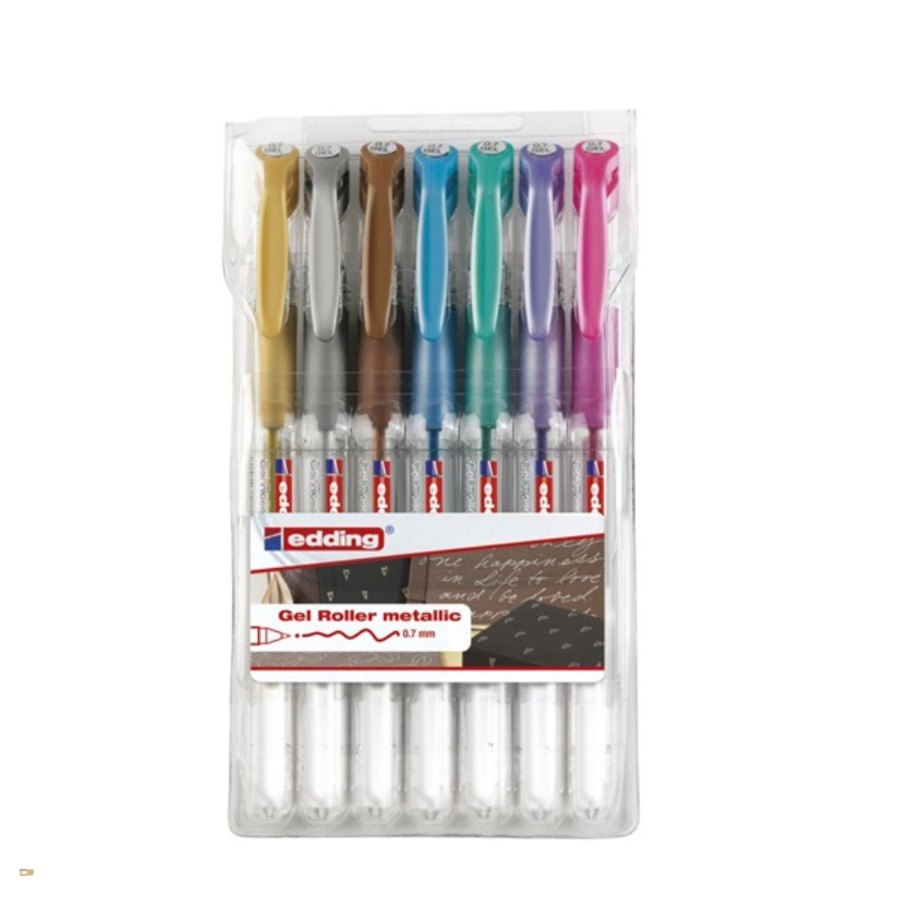 A kreatív alkotás sosem volt még ilyen színes és szórakoztató! Az Edding Metallic 2185 7db-os vegyes színű zseléstoll készlet garantáltan feldobja mindennapjaidat. Az élénk, metálos árnyalatok nem csak papíron, de sötét háttereken is remekül mutatnak, így különleges hatást érhetsz el velük.