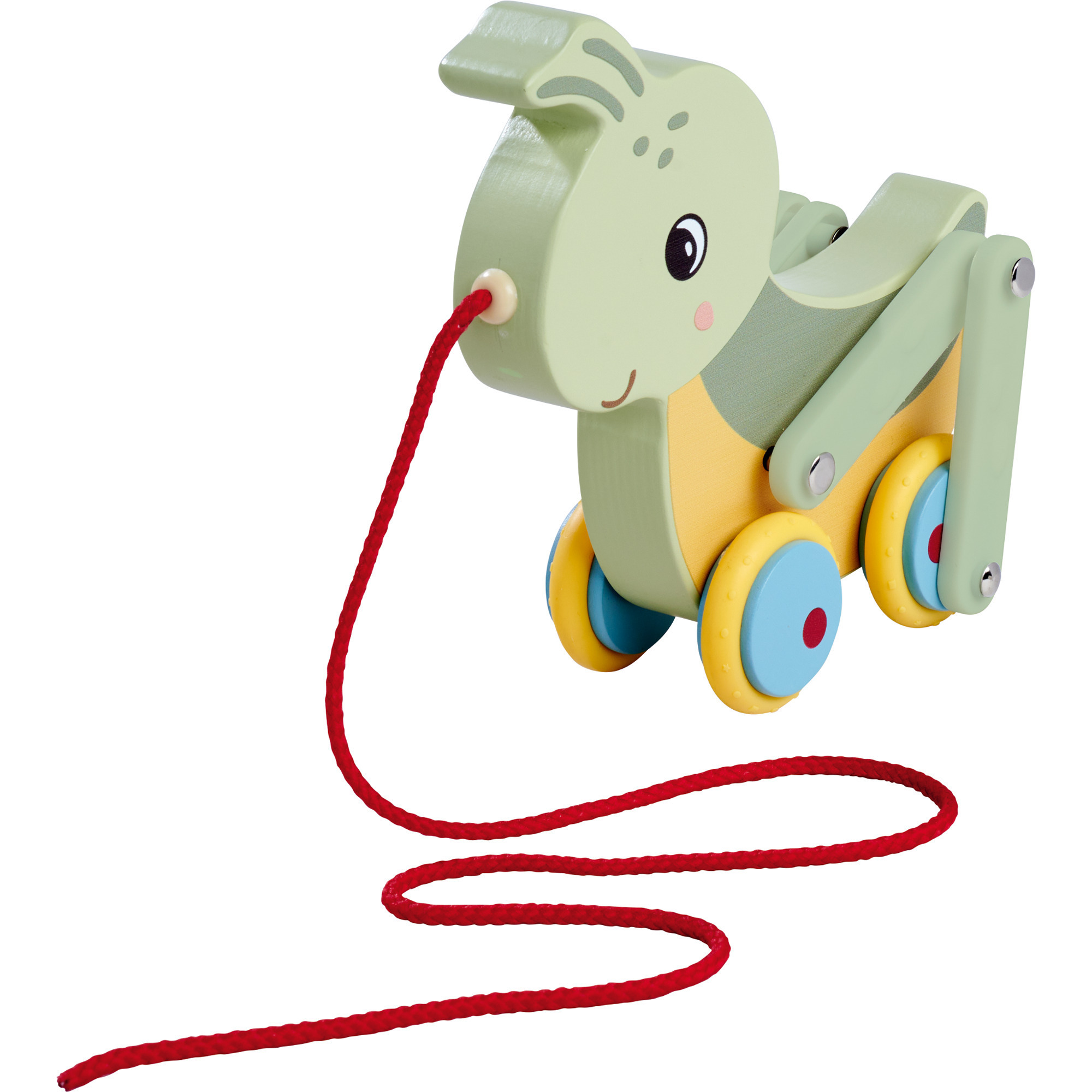 A fa húzható játékok a klasszikus kisgyermekkori játékok közé tartoznak, és generációk óta jelen vannak a gyerekszobákban. Tartósságuk miatt gyakran több gyermek is örökli ugyanazt a kedvenc figurát. A mozgó részek – mint ennél a szöcskénél a lábak – különösen lekötik a kicsik figyelmét, mert egyszerre vizuális (látják a mozgást) és mozgásos (húzzák, tolják) élményt nyújtanak. A fa felület természetes meleg tapintása és a jól megválasztott színek együtt olyan játékélményt adnak, amely segít a gyermeknek felfedezni a formák, mozgások és ritmusok világát már a legelső években.